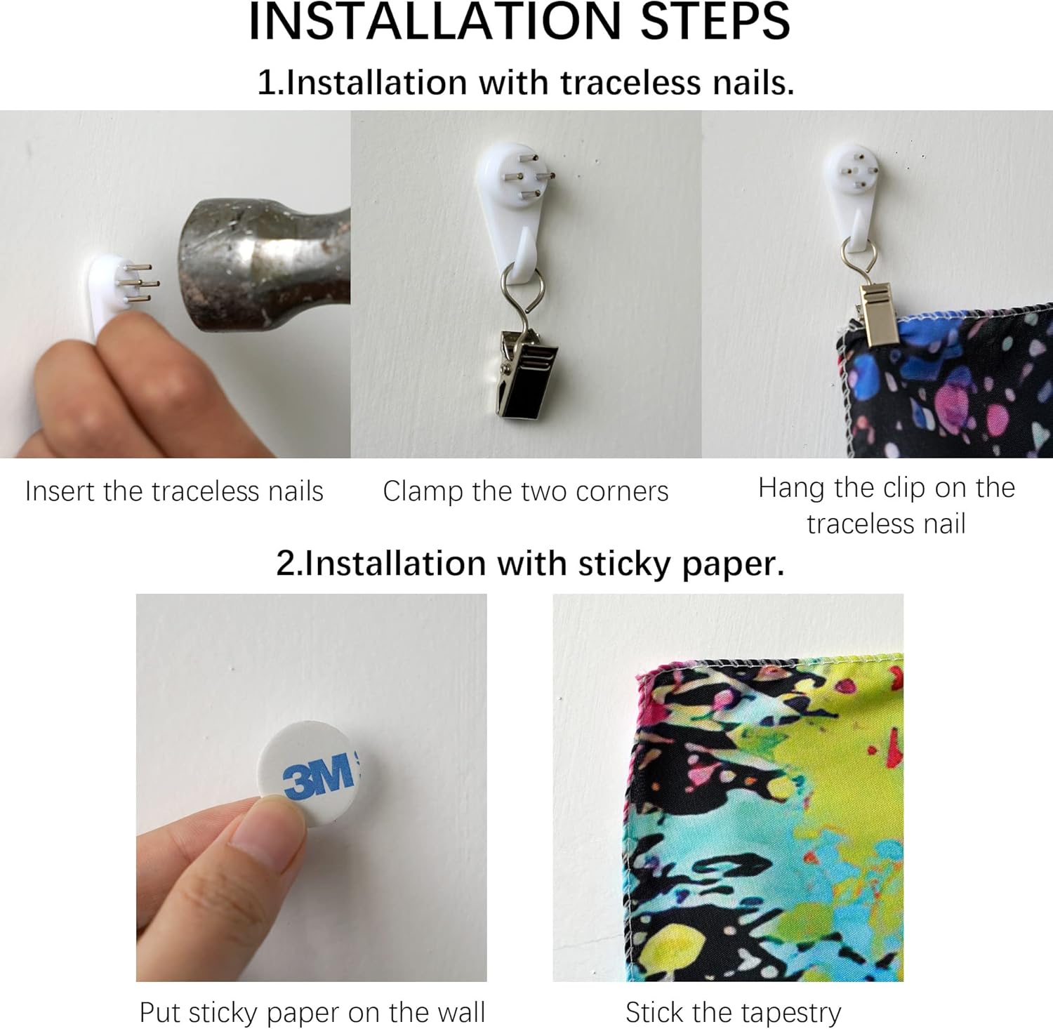 • Care Instruction & Package: Hand or machine washable, gentle cycle in cold water, tumble dry on low heat, iron at low temperature.Do not bleach it. Package Included: 1x Tapestry with Hanging Accessories( 2 Traceless Thumbtacks + 2 Metal Clips + 2 Mounting Tapes).