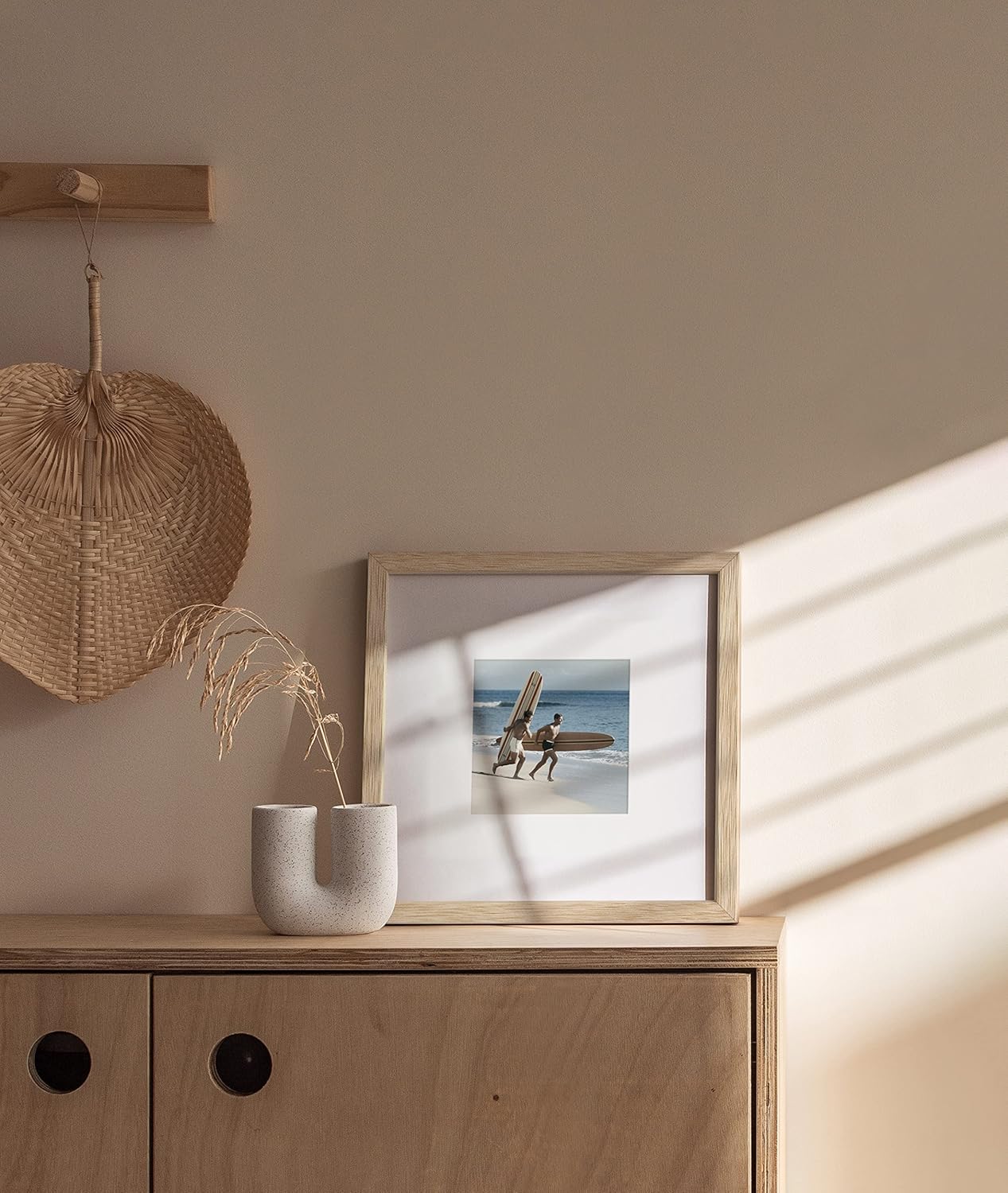 • SQUARE MATTED FRAME: Our 10 x 10 frame for wall is meticulously constructed using natural oak wood, known for its timelessness and durability. The slim profile of the square poster frame effortlessly blends into any interior decor, adding a contemporary touch. The clean lines and sleek design make the 10 by 10 frame a perfect choice for those seeking a stylish, understated display solution