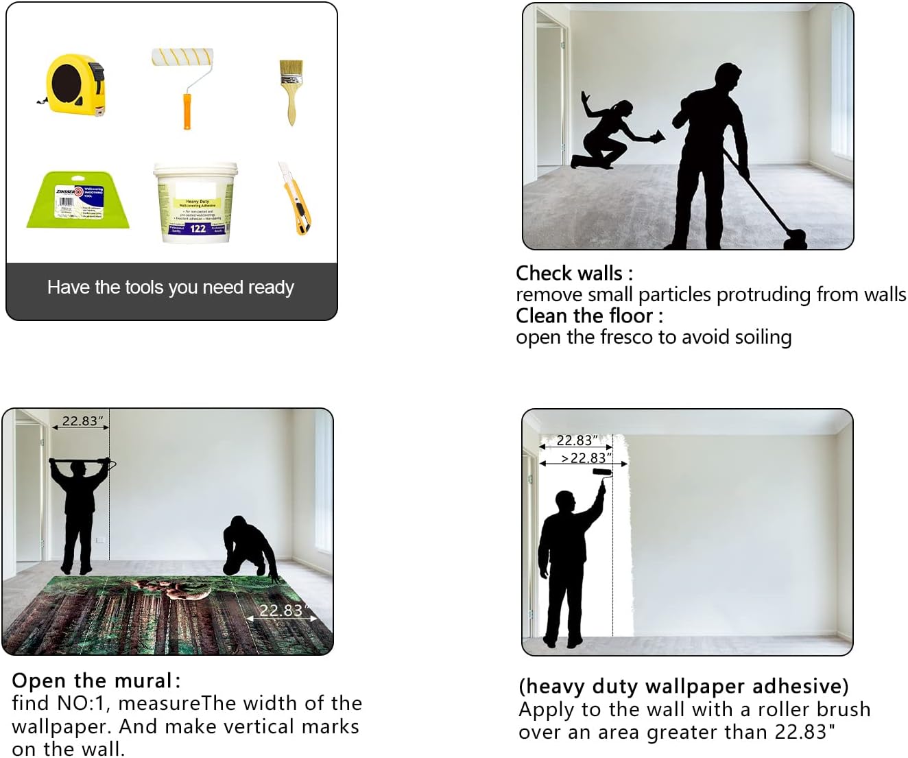 • This mural is It's not Peel and Stick . Additional Purchase required ( thick wallpaper adhesive ) please Check if is the product you need . thanks.