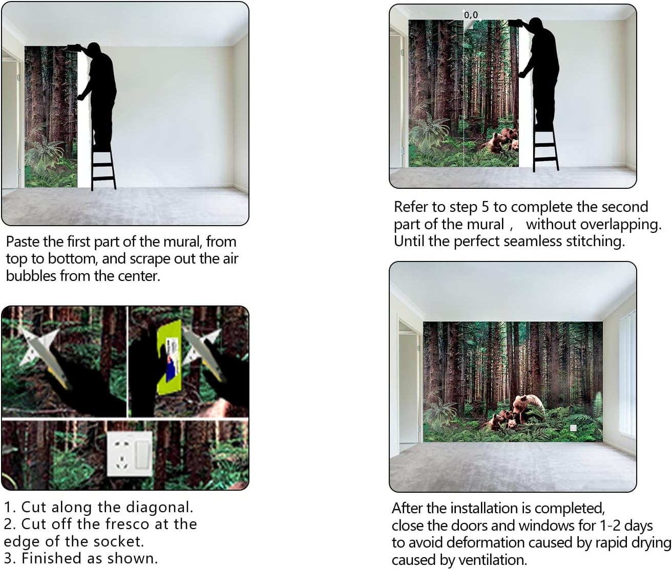 • It's easy to install: at the bottom of each mural we have a numbered sequence, You can refer to the instructions we provided and the main picture 6-7,just match the numbers and you'll be amazed!