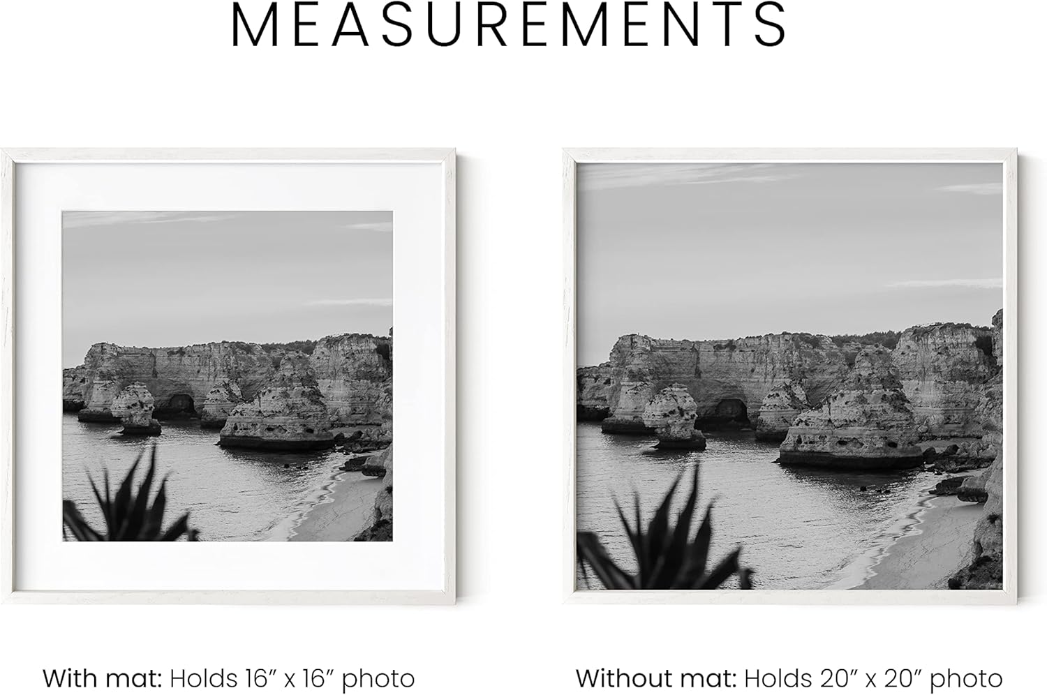 HAUS AND HUES Solid Oak Wood 20”x20” Picture Frames Matted to 16”x16” Set of 4 - White Picture Frames 20x20, 20x20 Square Frames, White Wood Picture Frames with Mat, Square Frames 20 x 20