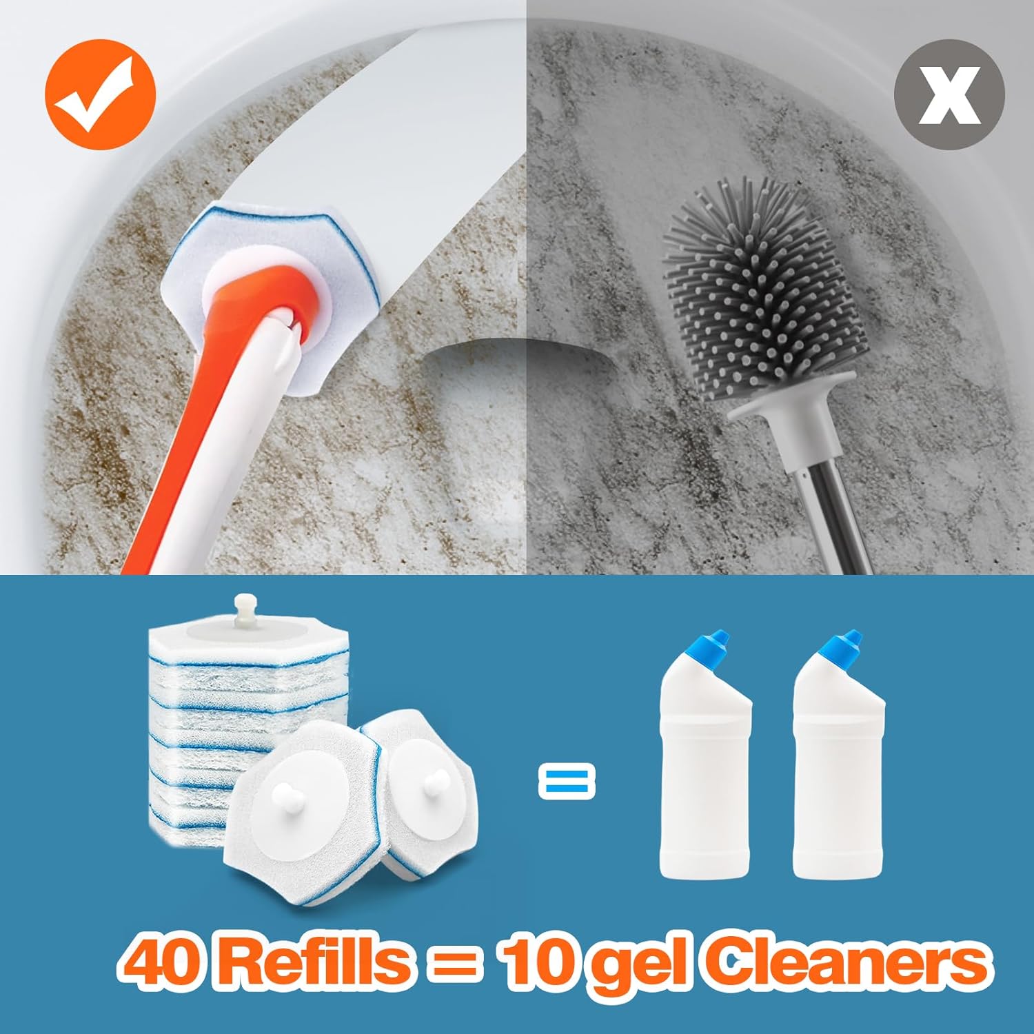 • 40 Pcs Disposable Cleaning Refills: The disposable toilet brush cleaner comes with 40 refills, which equals with 10 gel cleaners. It’s super cost-effective and can use for more than 2 months for a normal family