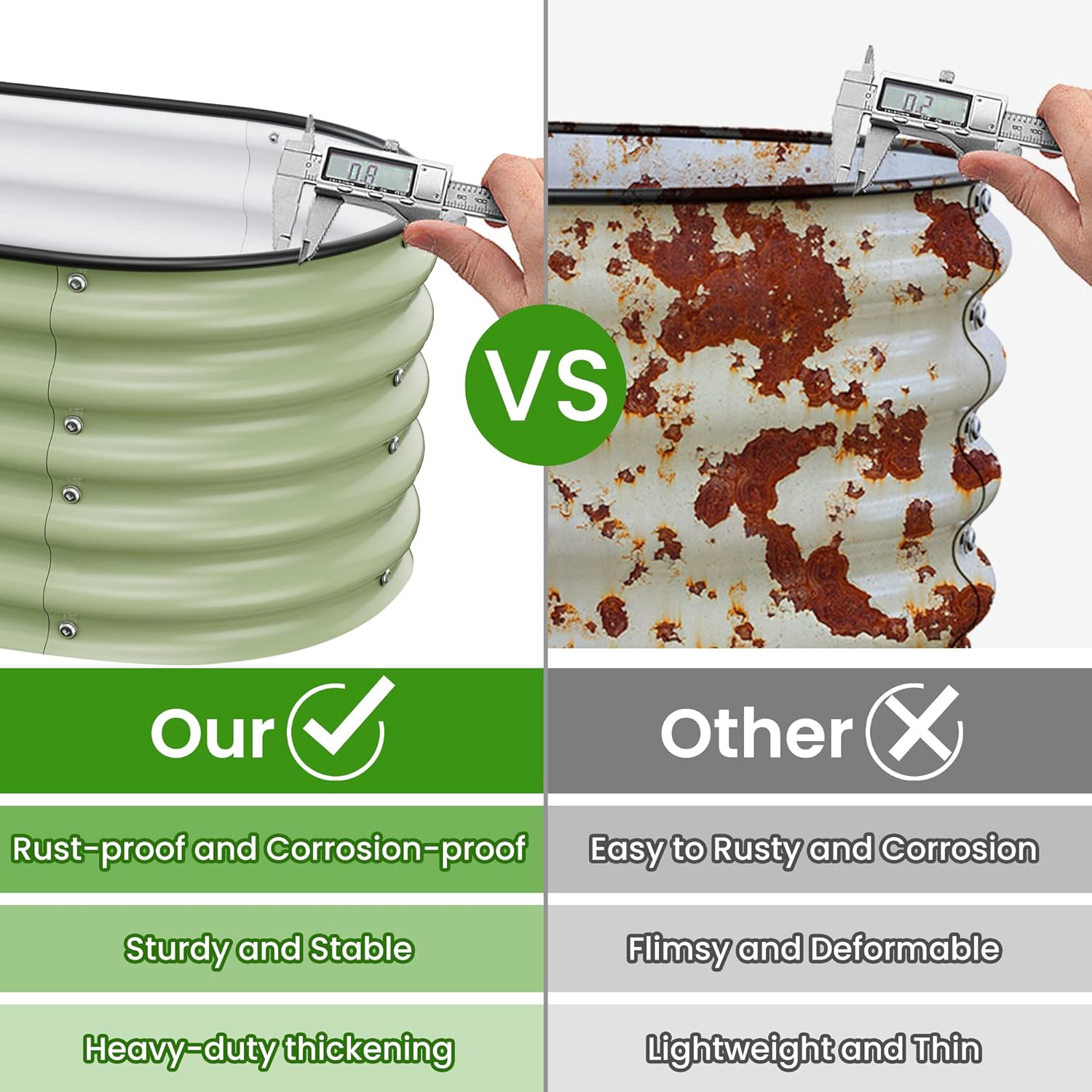 • Strong and Durable: Nossta garden beds Made of 0.6mm thickness zinc-aluminum-magnesium coated steel,its strong anti-rust performance, withstanding rust, rot, mildew, UV rays and corrosion. ensuring up to decades of service life