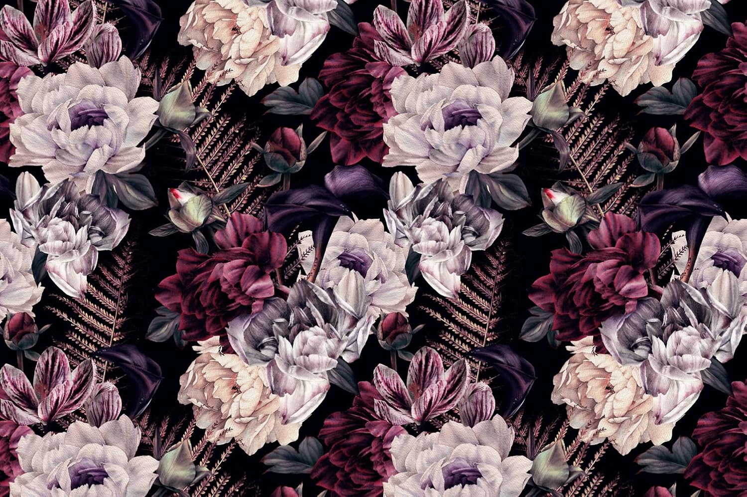 Floral Wallpaper Watercolor Dark Peony Flowers Mural Wallpaper for Bedroom Living Room (Not Peel n' Stick)