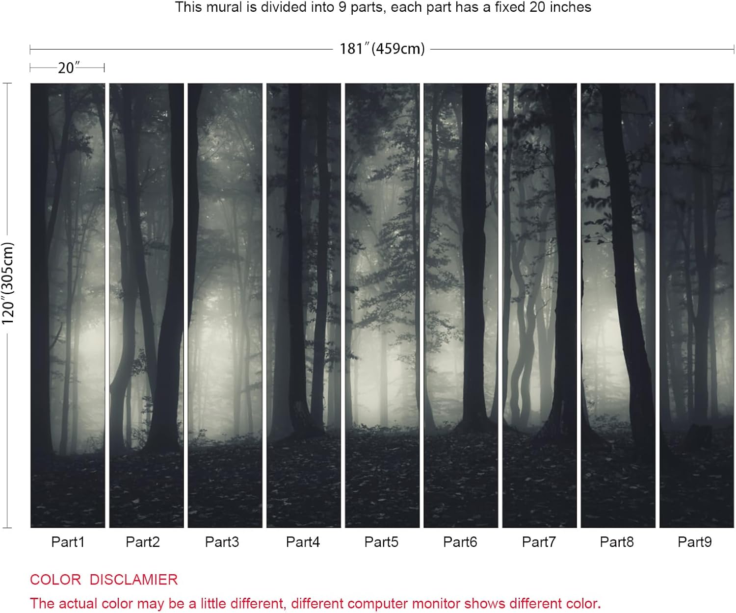 • Dimension:Approx. 181"x120" (Width x Height). This mural wallpaper is cut into 9 strips for easy installation.
