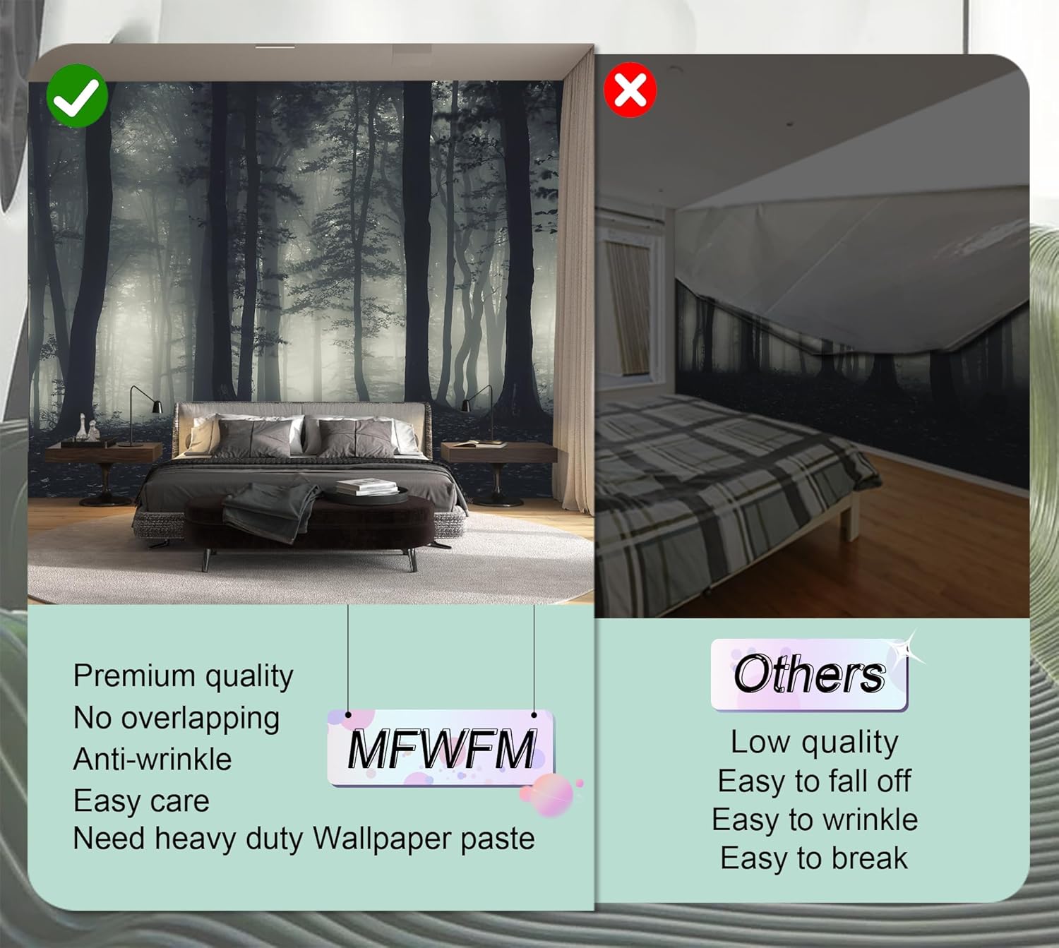 • Warming tips: Not peel and stick. Need to buy wallpaper paste by yourself. We recommend to use a standardized fleece wallpaper paste.