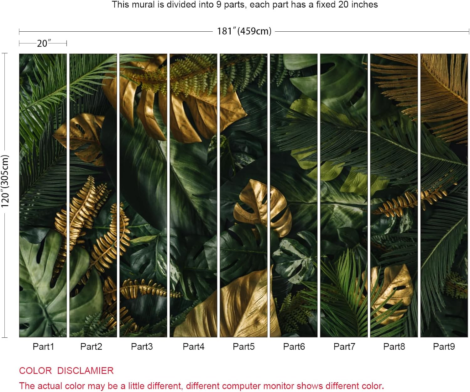 • Dimension:Approx. 181"x120" (Width x Height). This mural wallpaper is cut into 9 strips for easy installation.