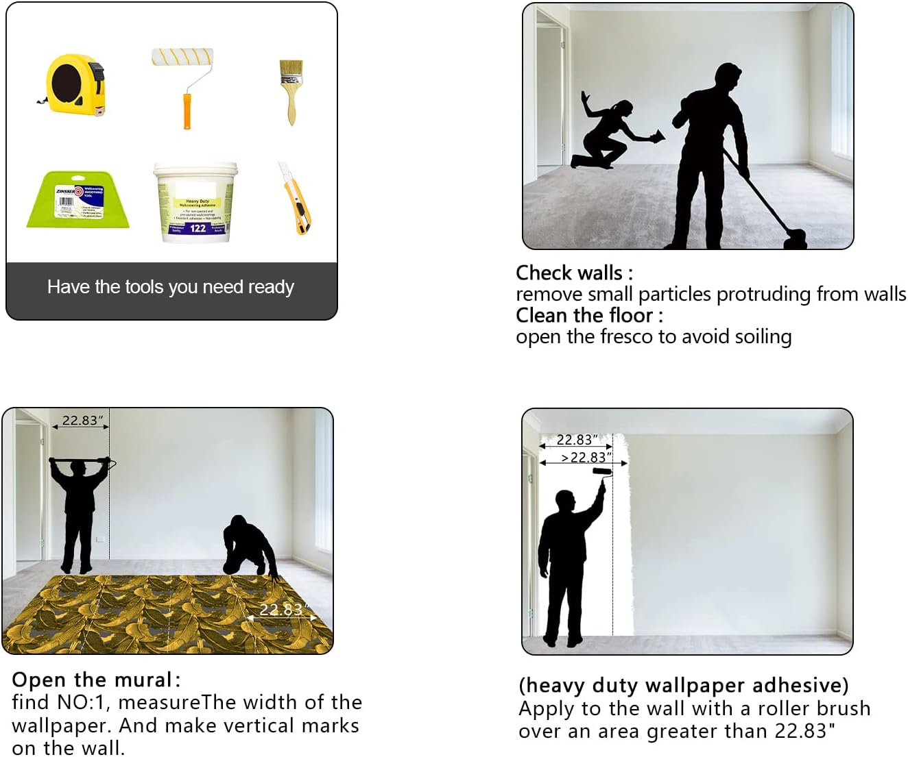 • This mural is It's not Peel and Stick . Additional Purchase required ( thick wallpaper adhesive ) please Check if is the product you need . thanks.