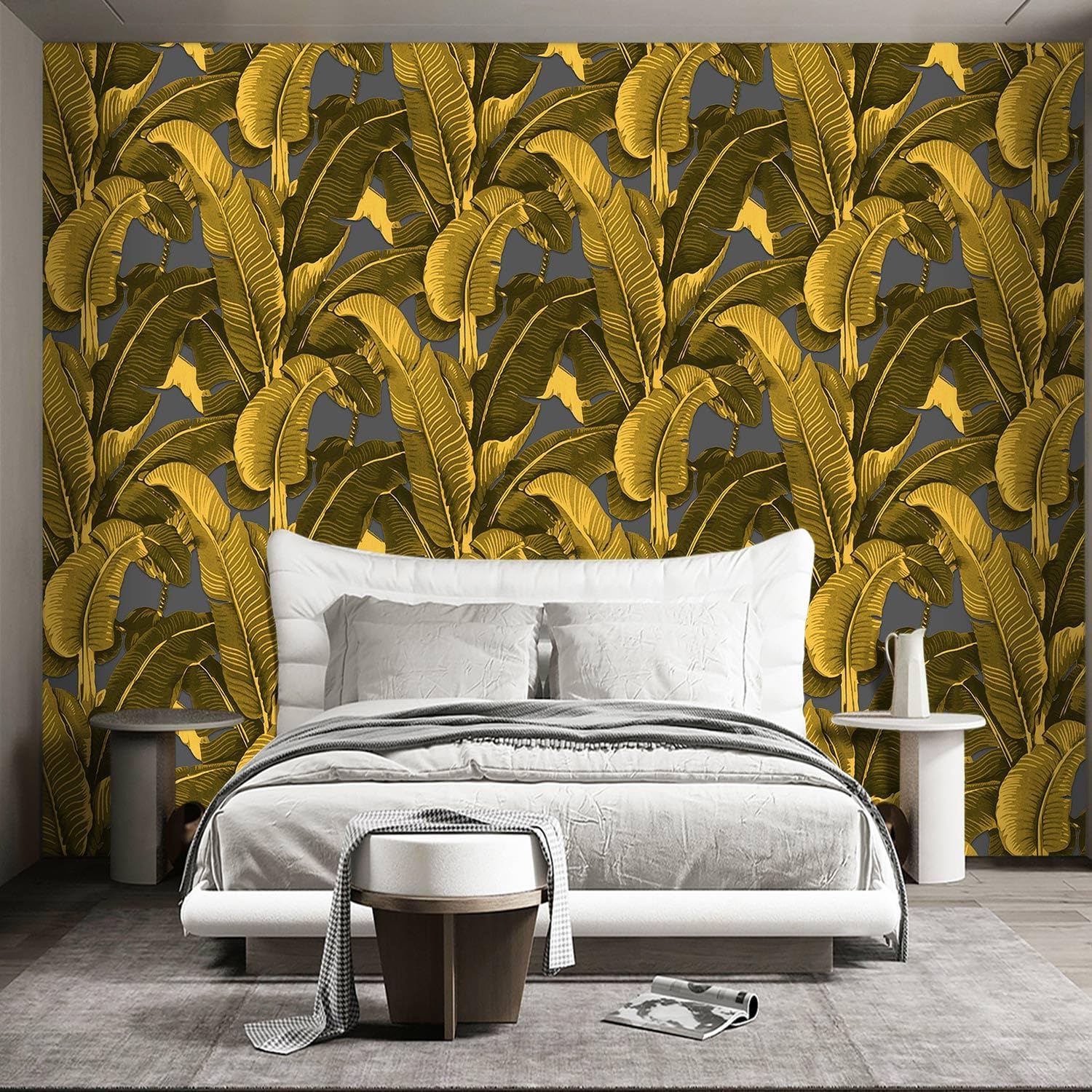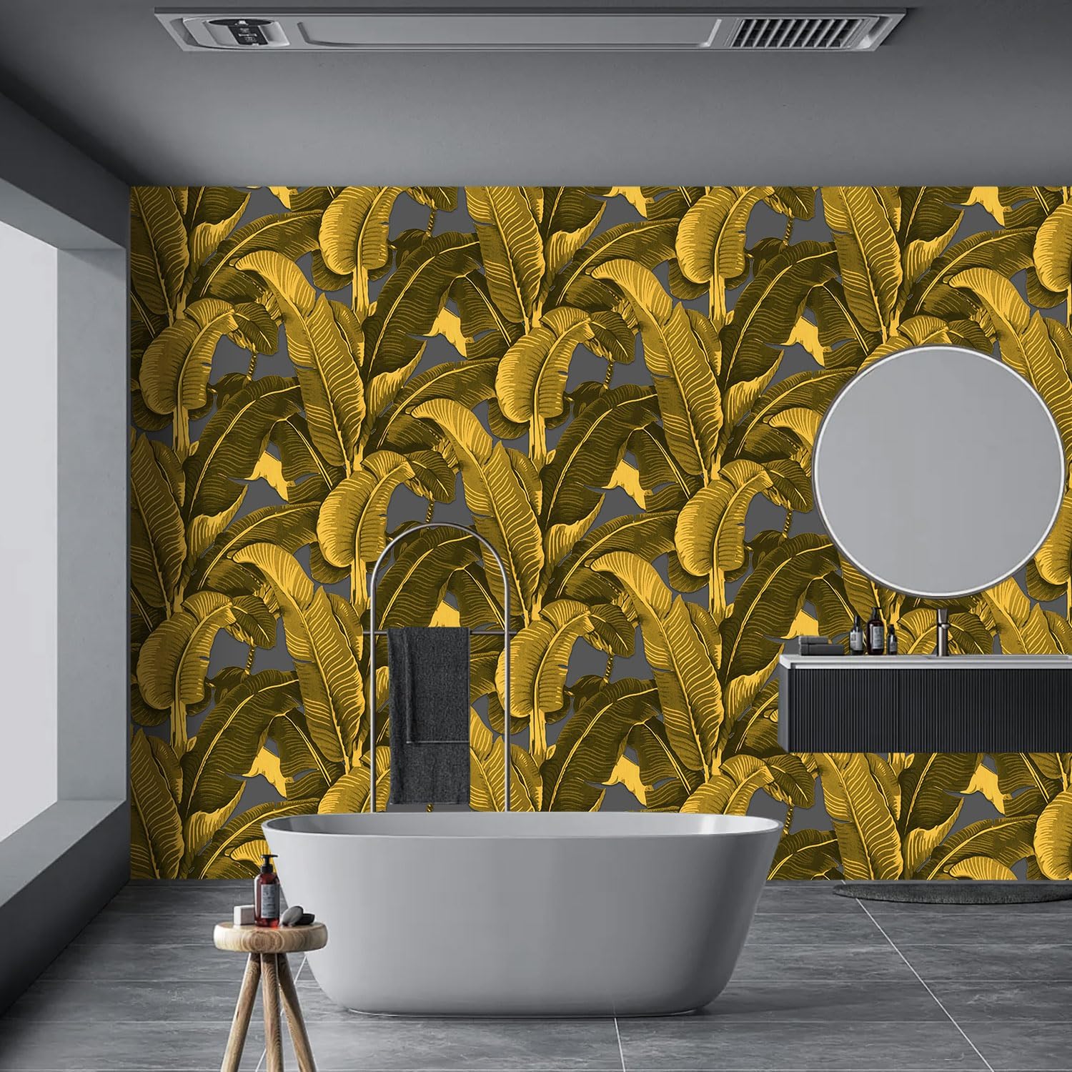 Vintage Gold Banana Leaf Bathroom wallpeper Living Room Bedroom Tropical Plant Wall Mural - 160"x108" (Not Peel and Stick)
