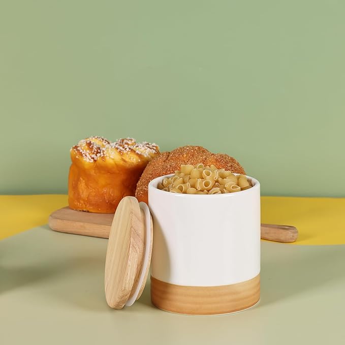 • Advantages of Porcelain:This Food Storage Jar is made of ceramic material, which is easier to clean than other materials. Note: Wooden covers must be hand washed