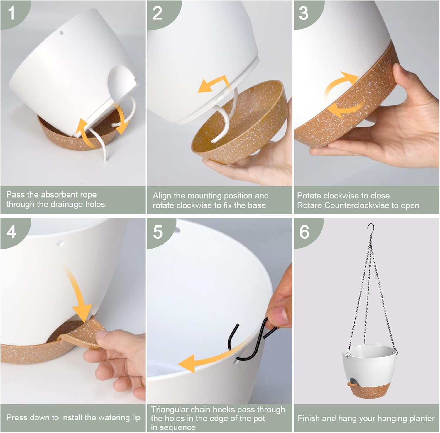 • Keep Your Plants Healthy - The self watering hanging planter features multiple drainage holes to help you avoid over-watering and release excess water. Separate the potting soil from the water surface, enter the water through cotton rope perforations to keep the soil moist and the roots healthy.