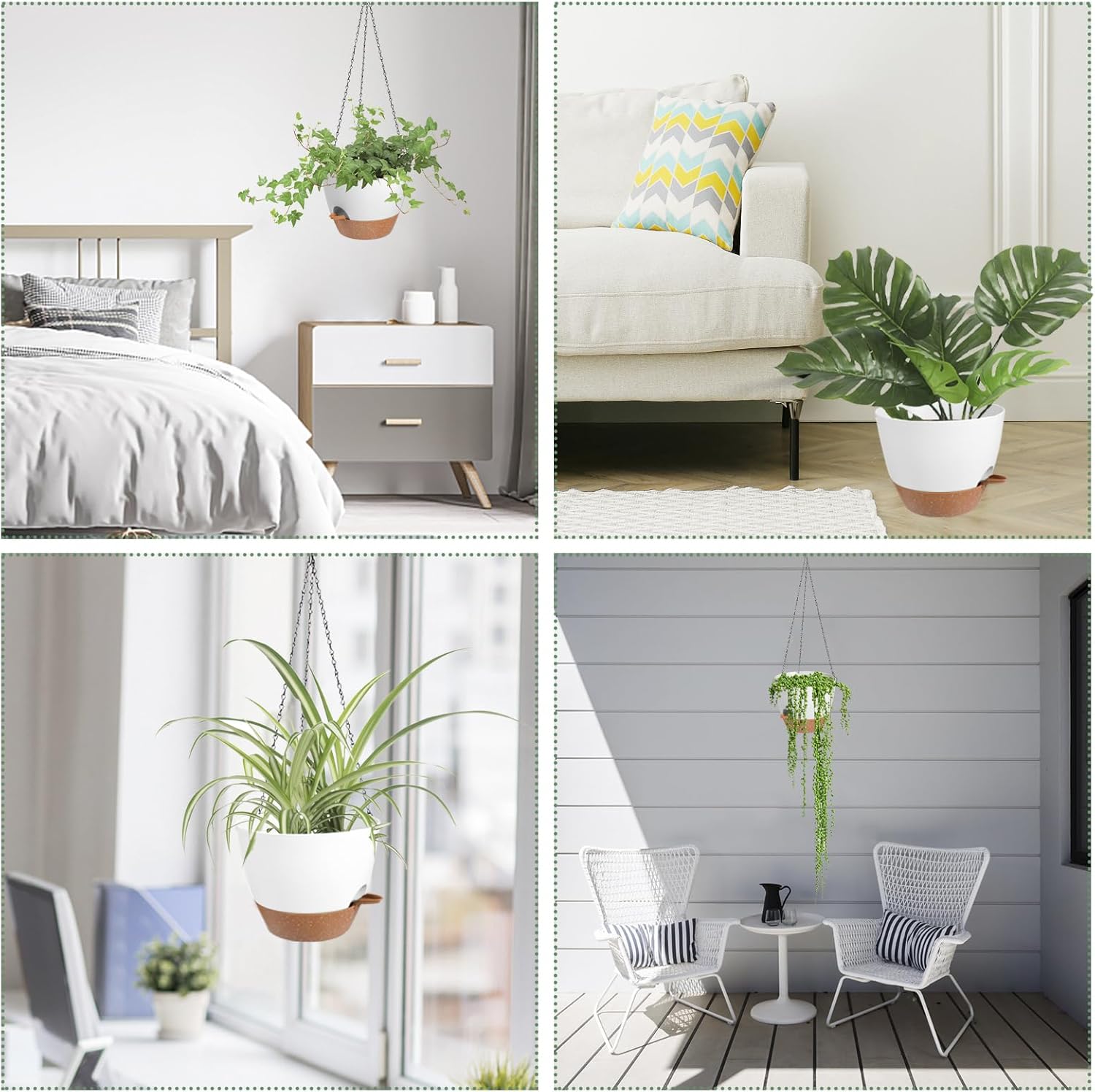 • Durable Material - Large planters for indoor outdoor plants feature thick sidewalls and a super load-bearing triangulated chain with three rust-resistant chains and hooks, ensuring durability and increased stability. Hanging planters with a vertical hanging design, it conveniently saves space.