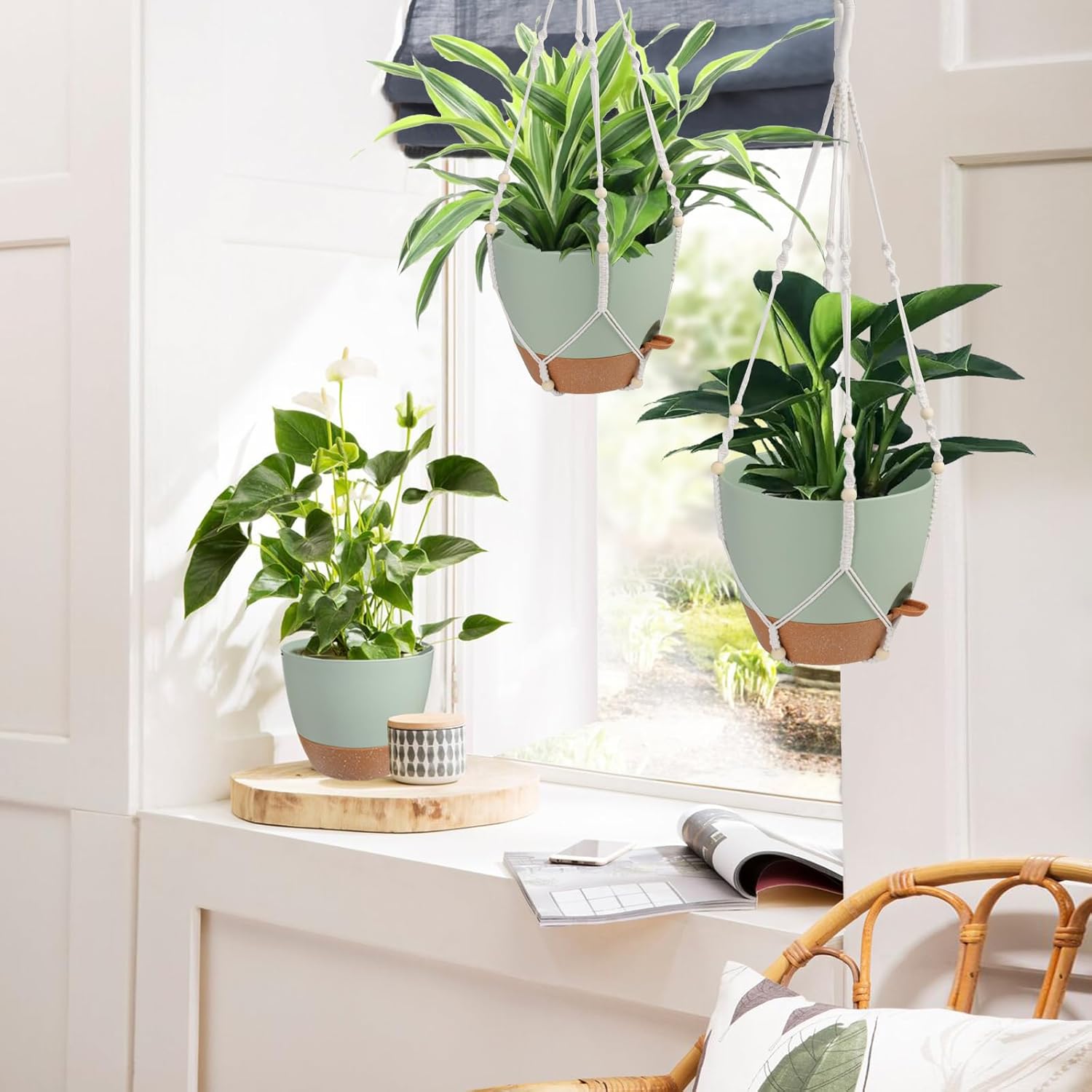 • Versatile Decor - These durable macrame plant hangers are ready to hang on your ceiling, porch, curtain rods, and patio doors. They're perfect for decorating living rooms, bedrooms, patio, balcony, garden and other places. Our plant holders indoor hanging is ideal for indoor and outdoor use.