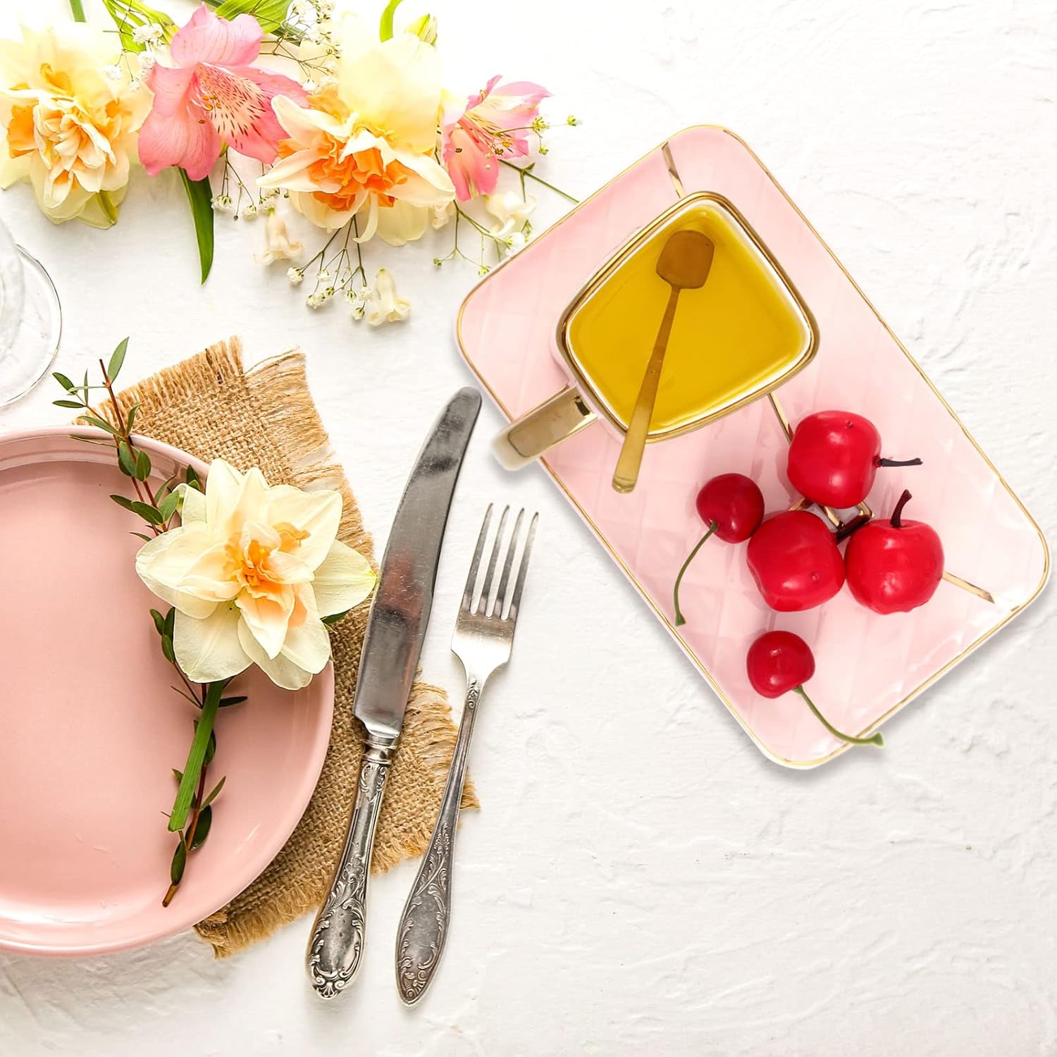 • Attractive and Elegant: the ceramic aesthetic coffee mug with saucer is characterized by handbag shapes and hand painted golden edges, and the color combination of pink and white with gold makes it more beautiful and graceful, which can bring both decorative and practical functions