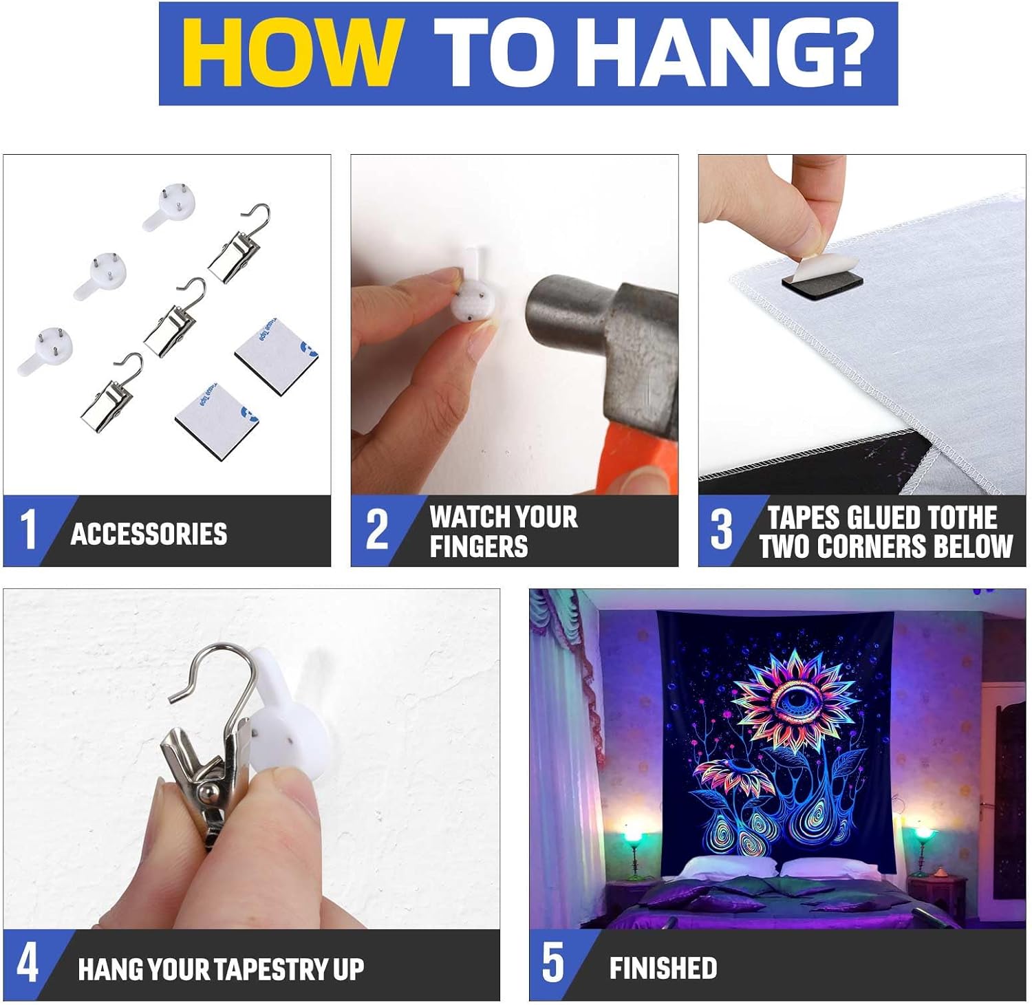 • 🌟 Brighten Up Your Space: ADDWel blacklight tapestry adds a vibrant and glowing touch to any room. ADDWel tapestry is printed with a UV-reactive ink that creates a neon-like effect under blacklight. Perfect for parties, raves, and other events that require a fun and unique atmosphere.