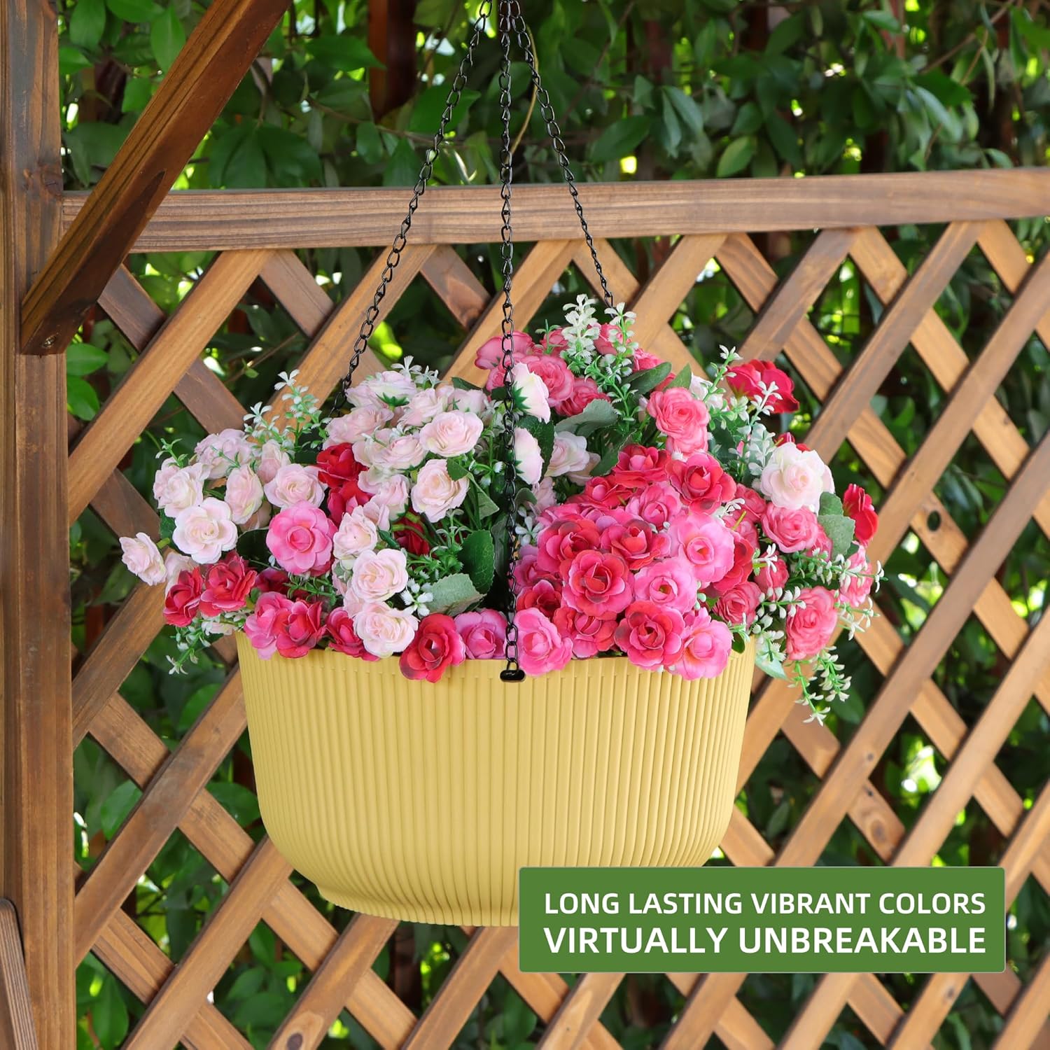Dexceder 11.2 Inch Self Watering Hanging Planters Indoor Outdoor, Thickened Hanging Basket Flower Plant Pot (2 Pack, Yellow)