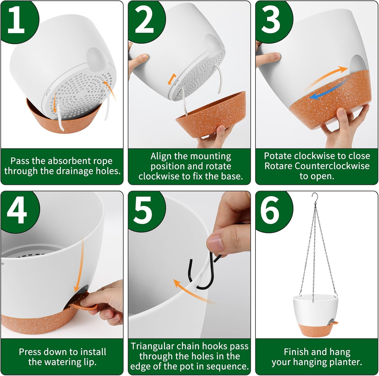 • 【Excellent Drainage Holes and Watering Lip】These flower pots for plants come with multiple drainage holes in the bottom. The holes and watering lip provide an air circulation system for the plant roots, which greatly reduces the problem of root rot of plants in a closed environment. The independent watering lip replenishes water for plants, so that water does not have to pass through the plant itself, At the same time, it is convenient to observe the current water level.