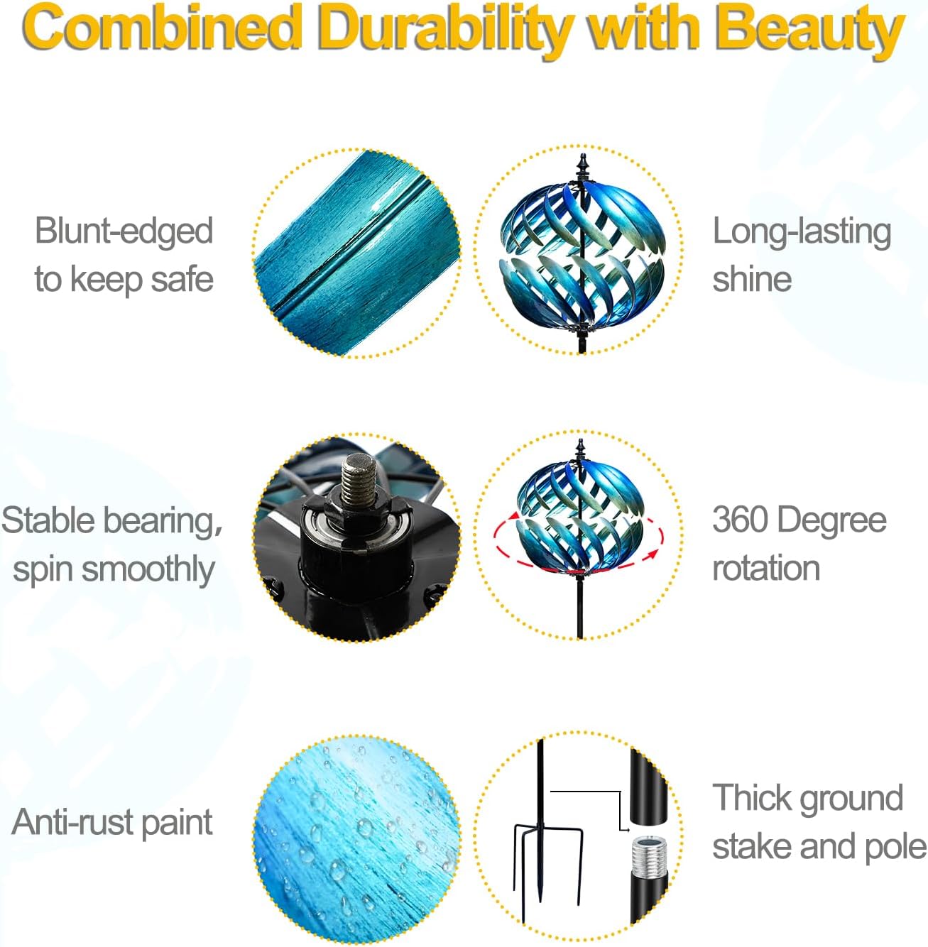 • 【Withstand All Weather】Stable pronged base stake design to keep the outdoor large wind spinner balanced and firmly placed. Hand-painted and UV treated to resist fading, so it is long-lasting and will perfom well as a garden decoration.