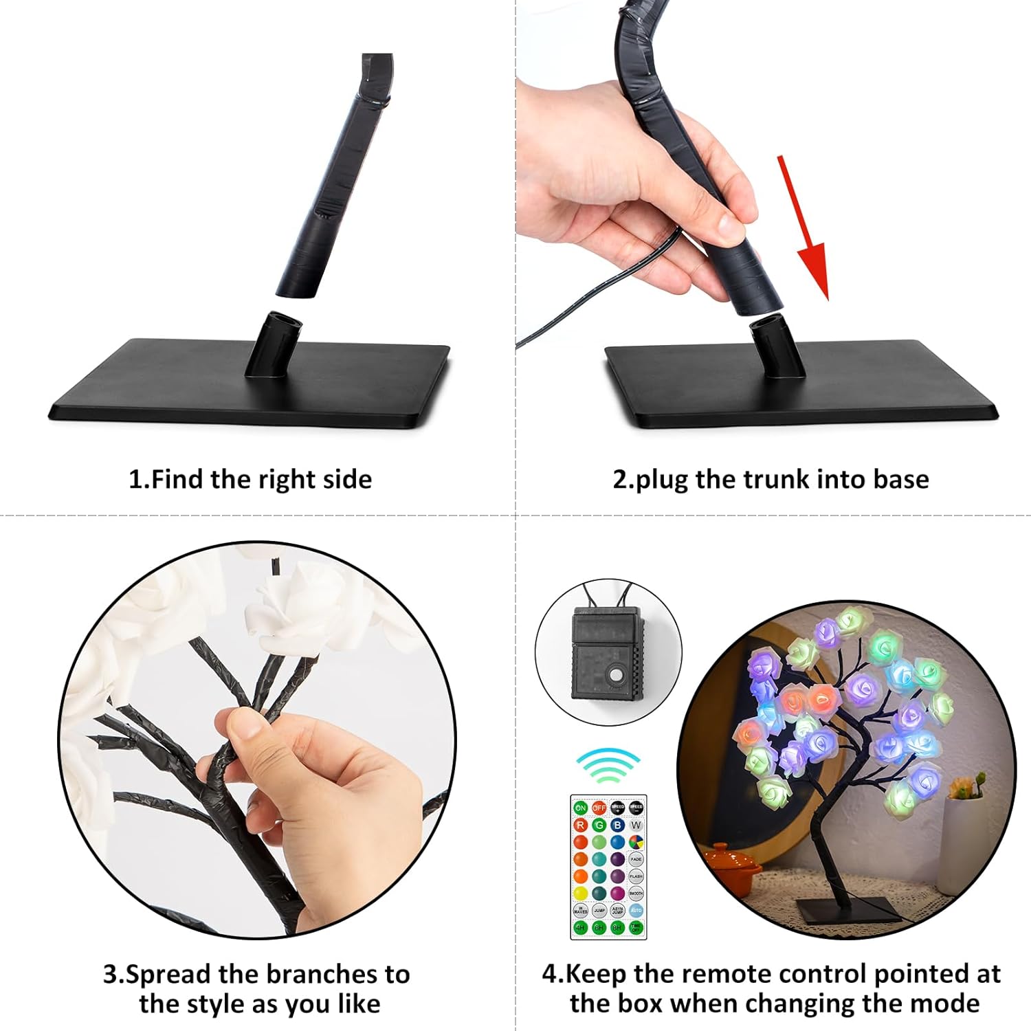 • COLORFUL ROSE TREE LAMP---This charming little tree is handcrafted to look elegant and warm. This rose light has soft rose petals and colored bulbs that can change 16 colors. Will create a wonderful atmosphere for your house or your table