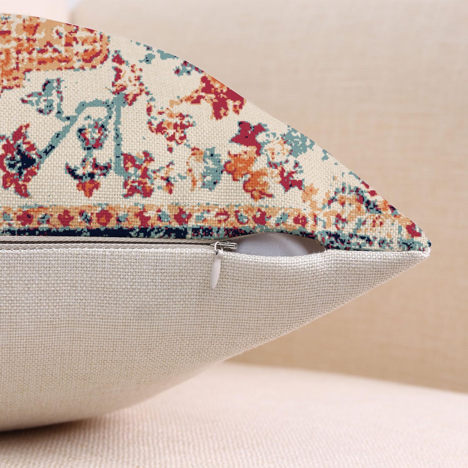 Outdoor Waterproof Pillow Covers - 20x20 Inch Set of 2 Bohemian Vintage Carpet Pattern Pillow Covers in Orange and Blue Ethnic Design for Decorative Farmhouse, Couch, Garden, Balcony