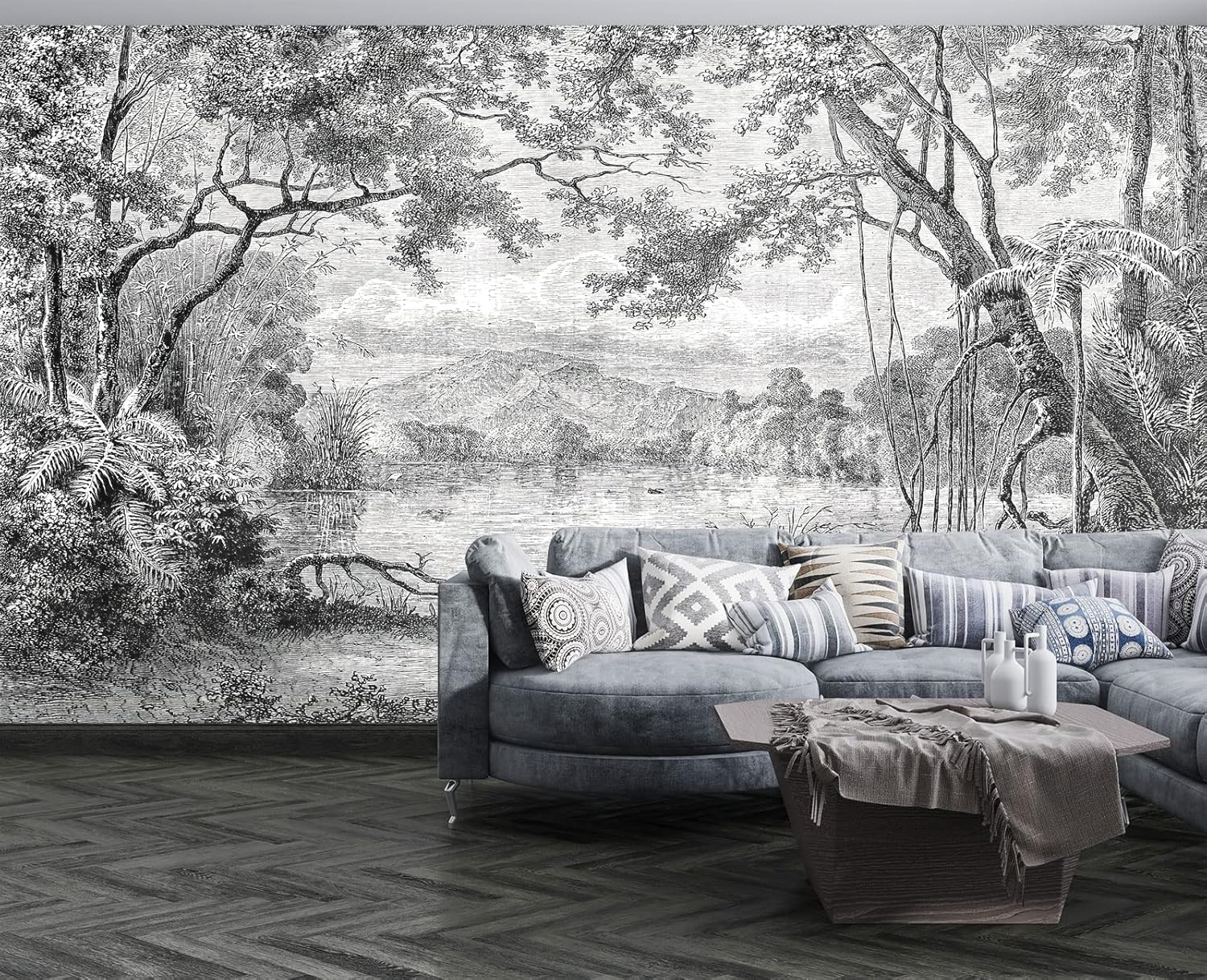 Black and White Tropical Rainforest Wall Mural Wallpaper for Bedroom 178" x 117"