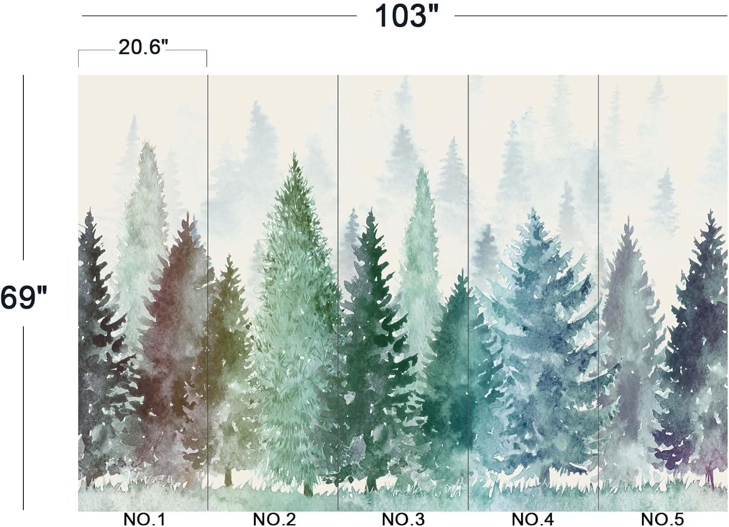 Colorful Watercolor Forests Children's Nursery Wall Mural Wallpaper 103" x 69"