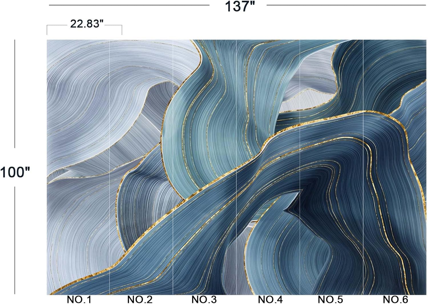 • The size of the wallpaper is 137" wide x 100" high and divided into 6 panels.