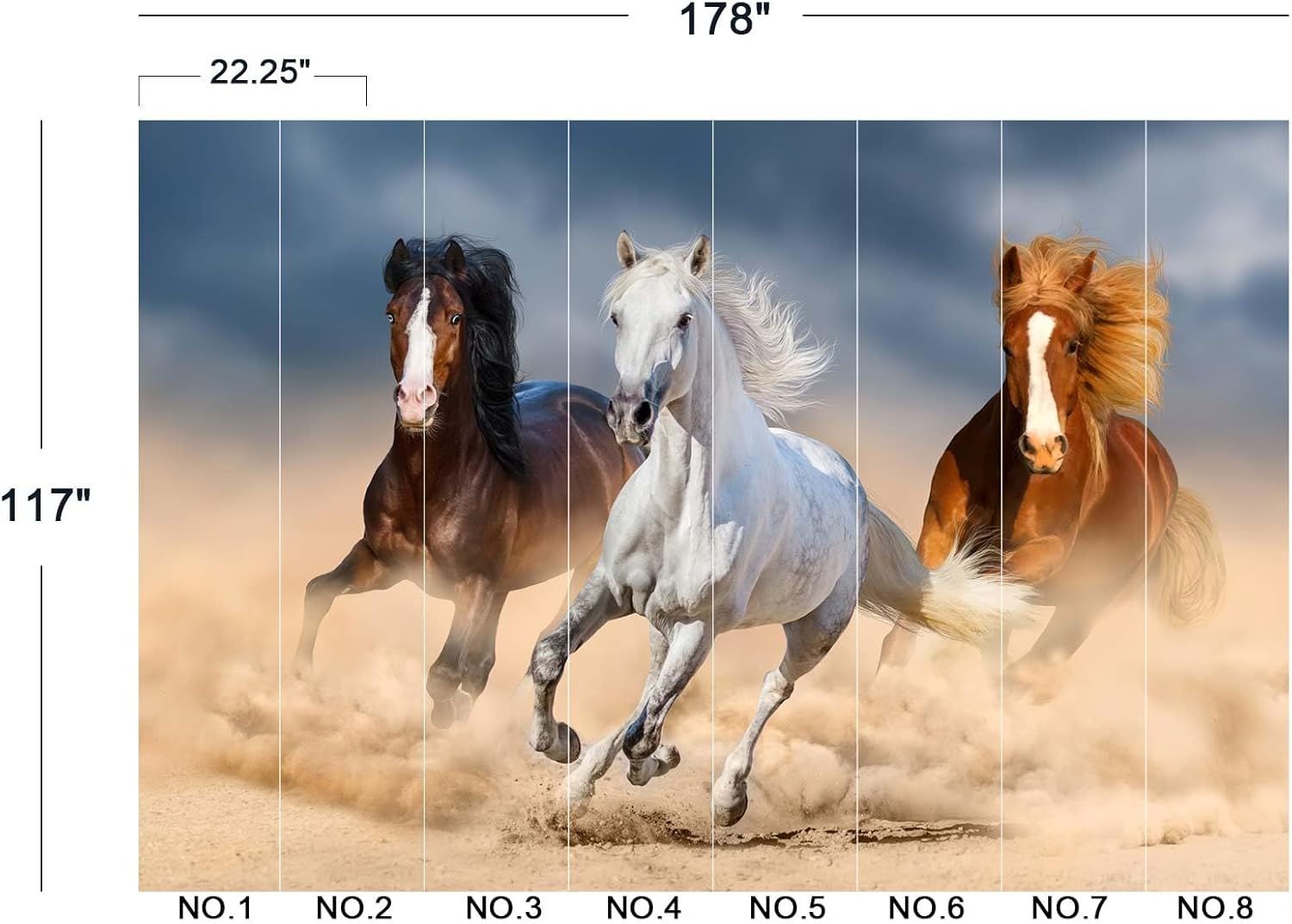 Three Running Horses Chinoiserie Wall Mural Wallpaper for Bedroom 178" x 117"
