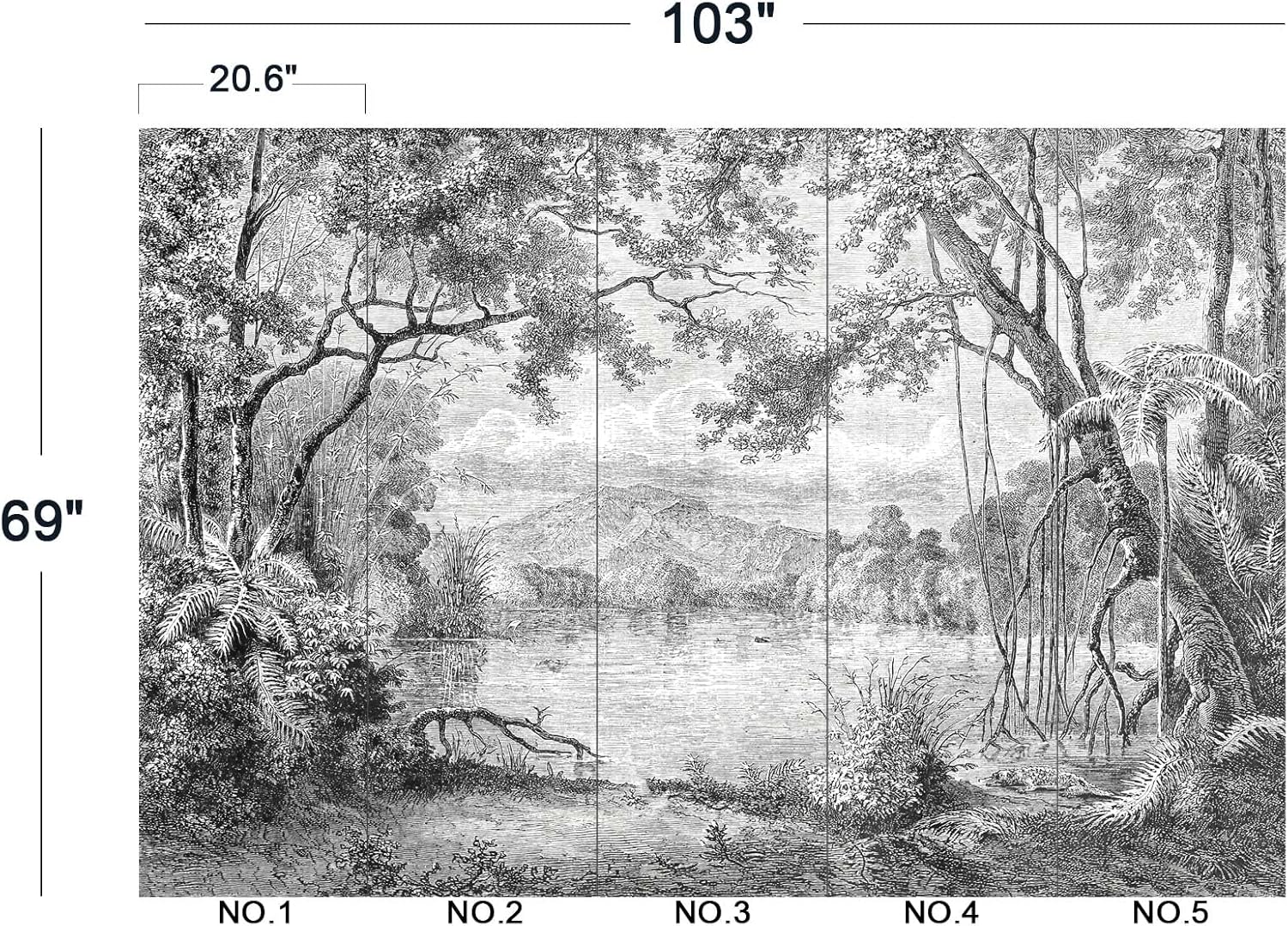 • The size of the wallpaper is 103" wide x 69" high and divided into 5 panels.