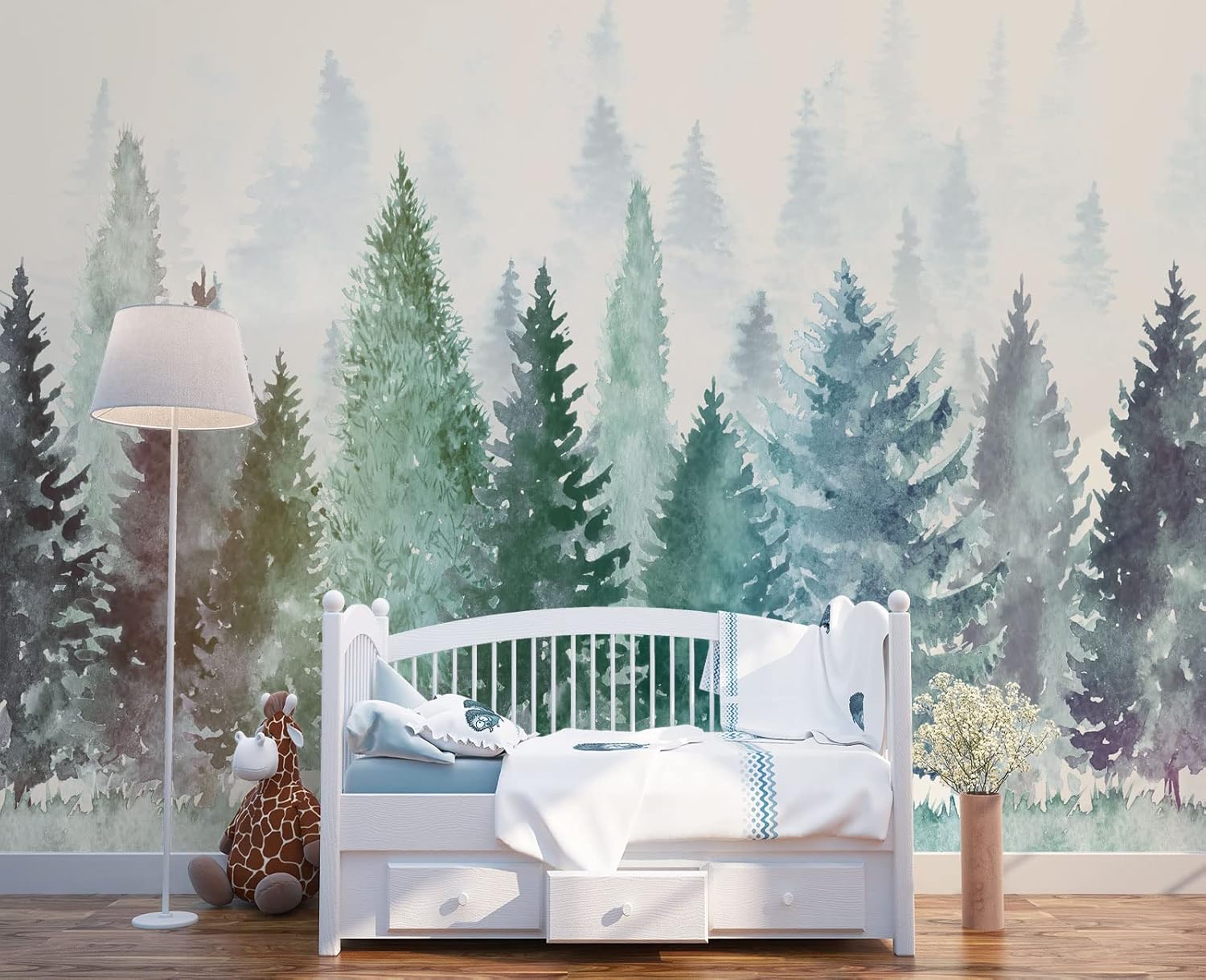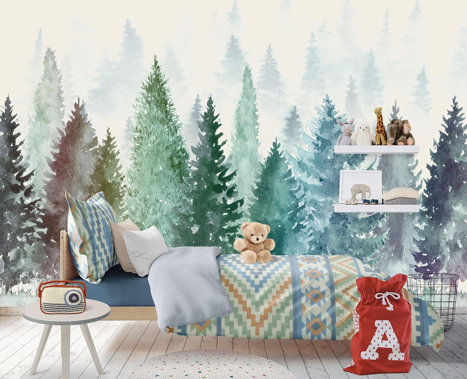 Colorful Watercolor Forests Children's Nursery Wall Mural Wallpaper 137" x 100"