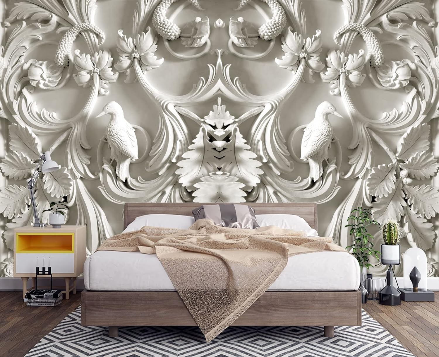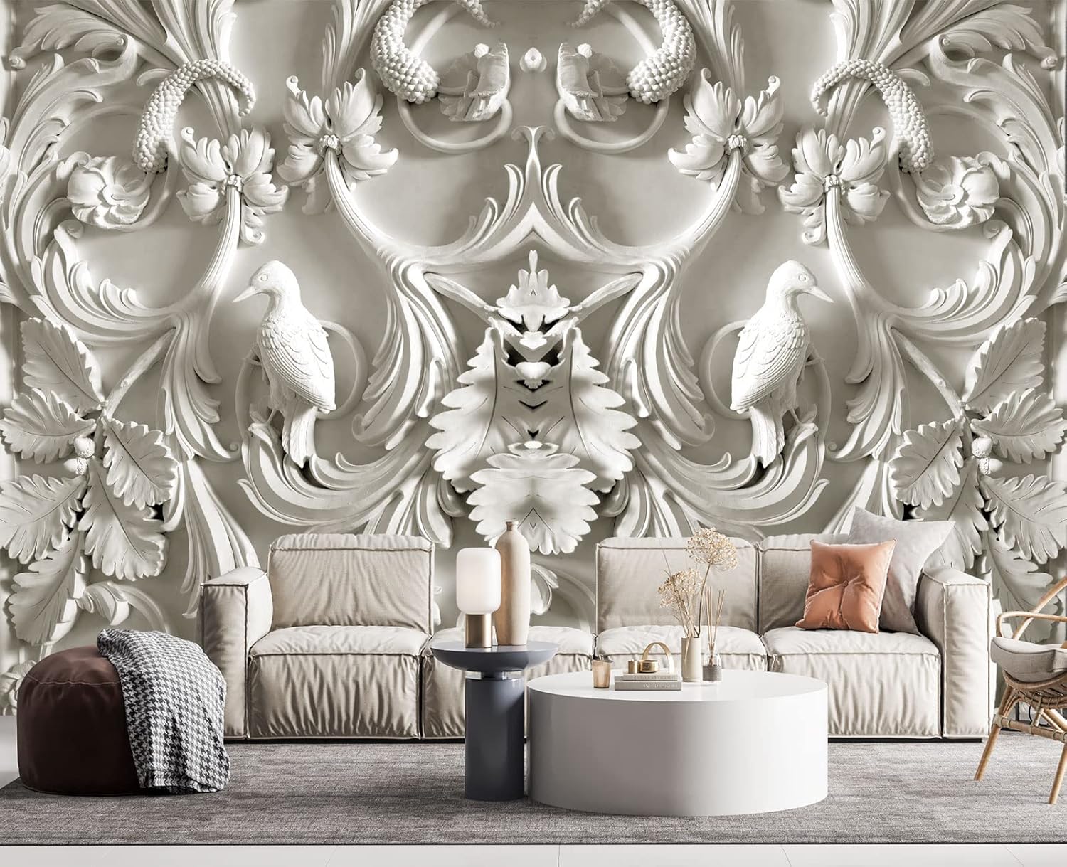 White Gypsum Art Wall Mural Wallpaper for Bedroom 103" x 69"
