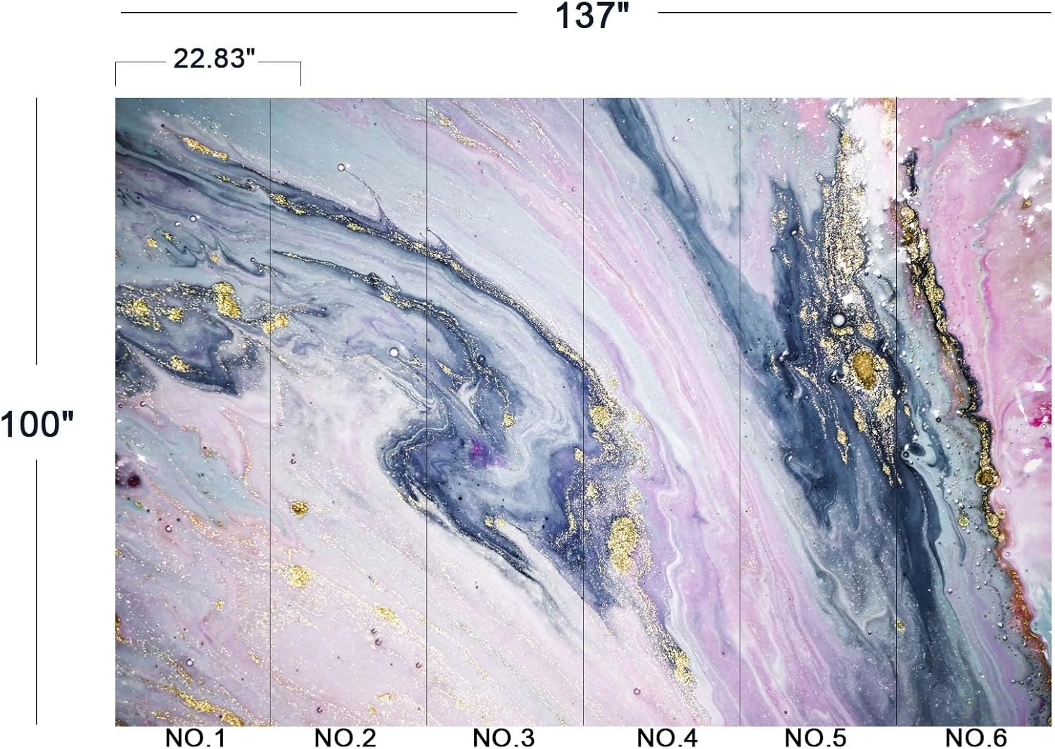 • The size of the wallpaper is 137" wide x 100" high and divided into 6 panels.