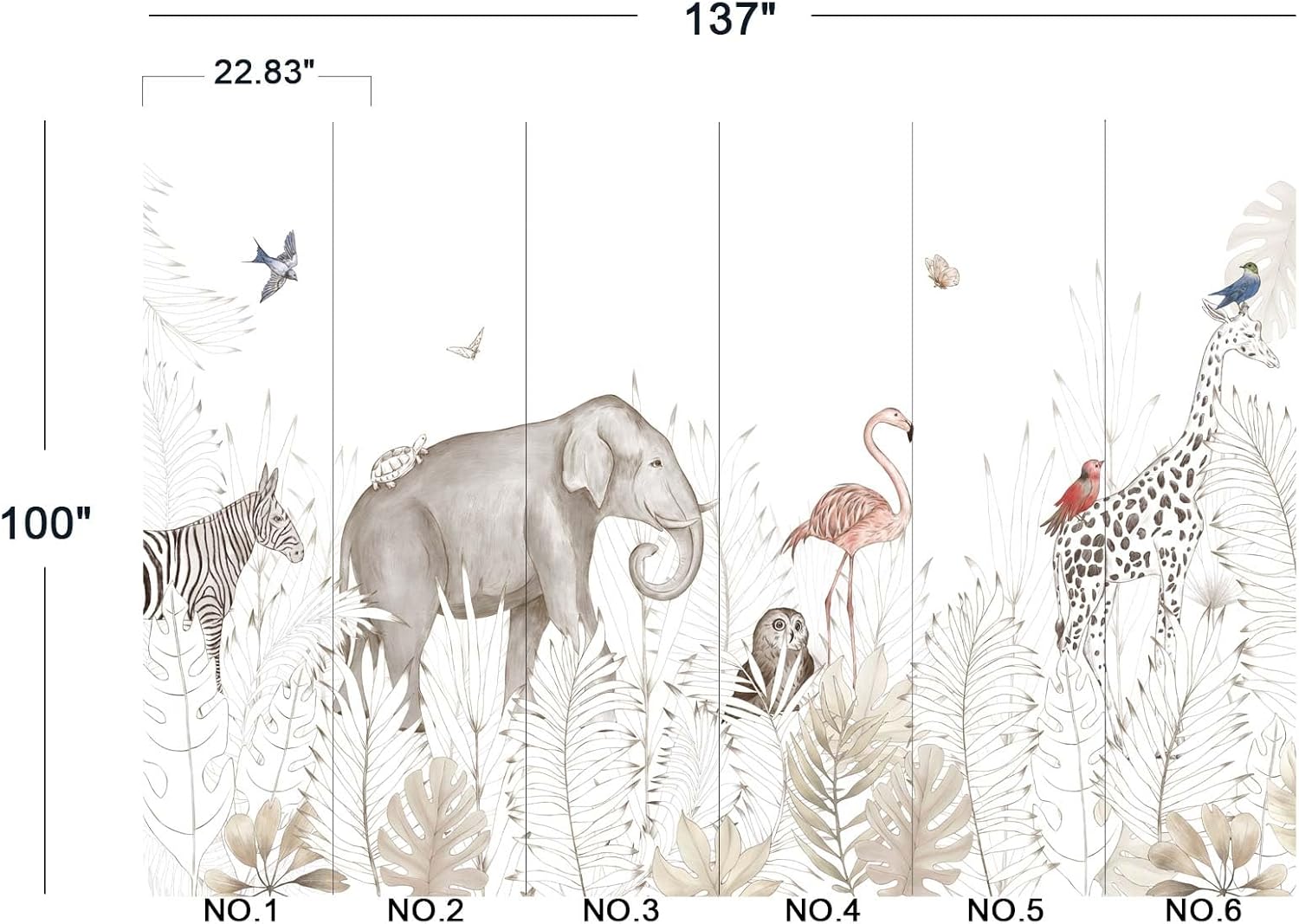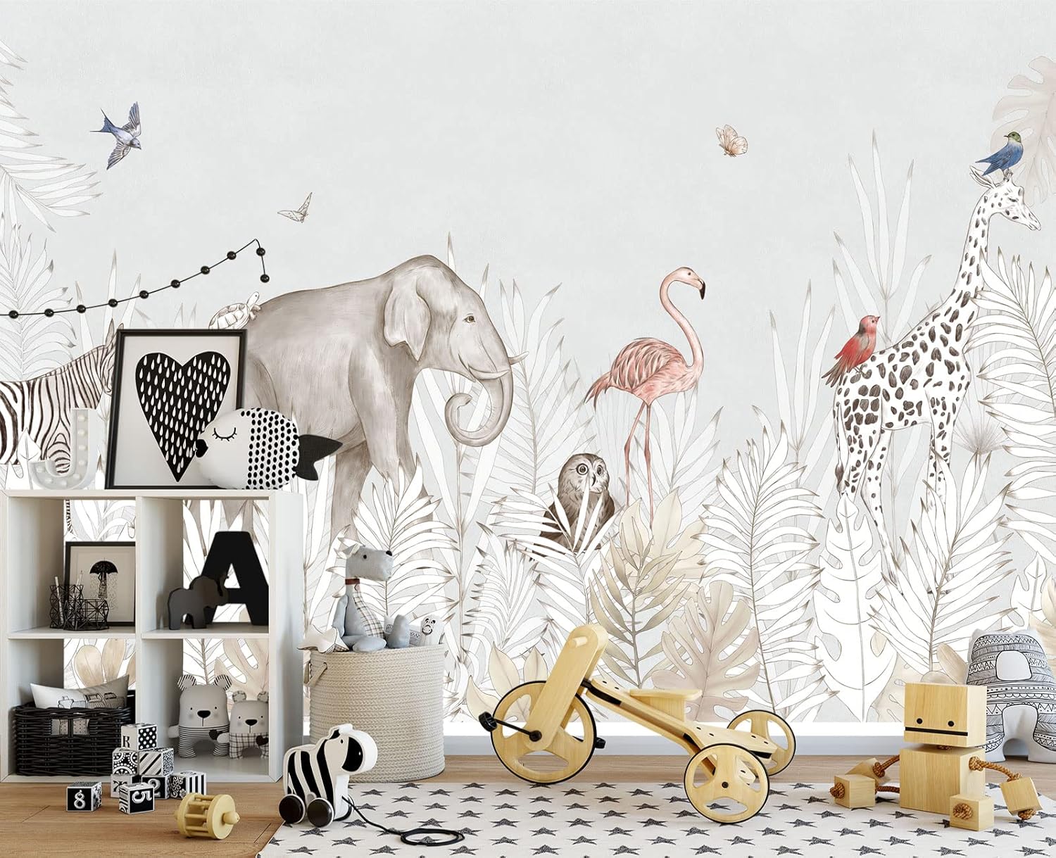 Elephant Zebra Animal Nursery Wallpaper Wall Mural 137" x 100"