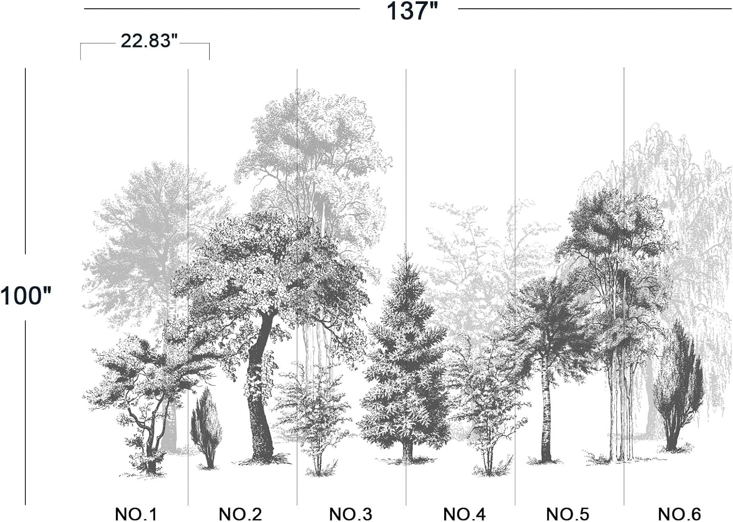 • The size of the wallpaper is 137" wide x 100" high and divided into 6 panels.