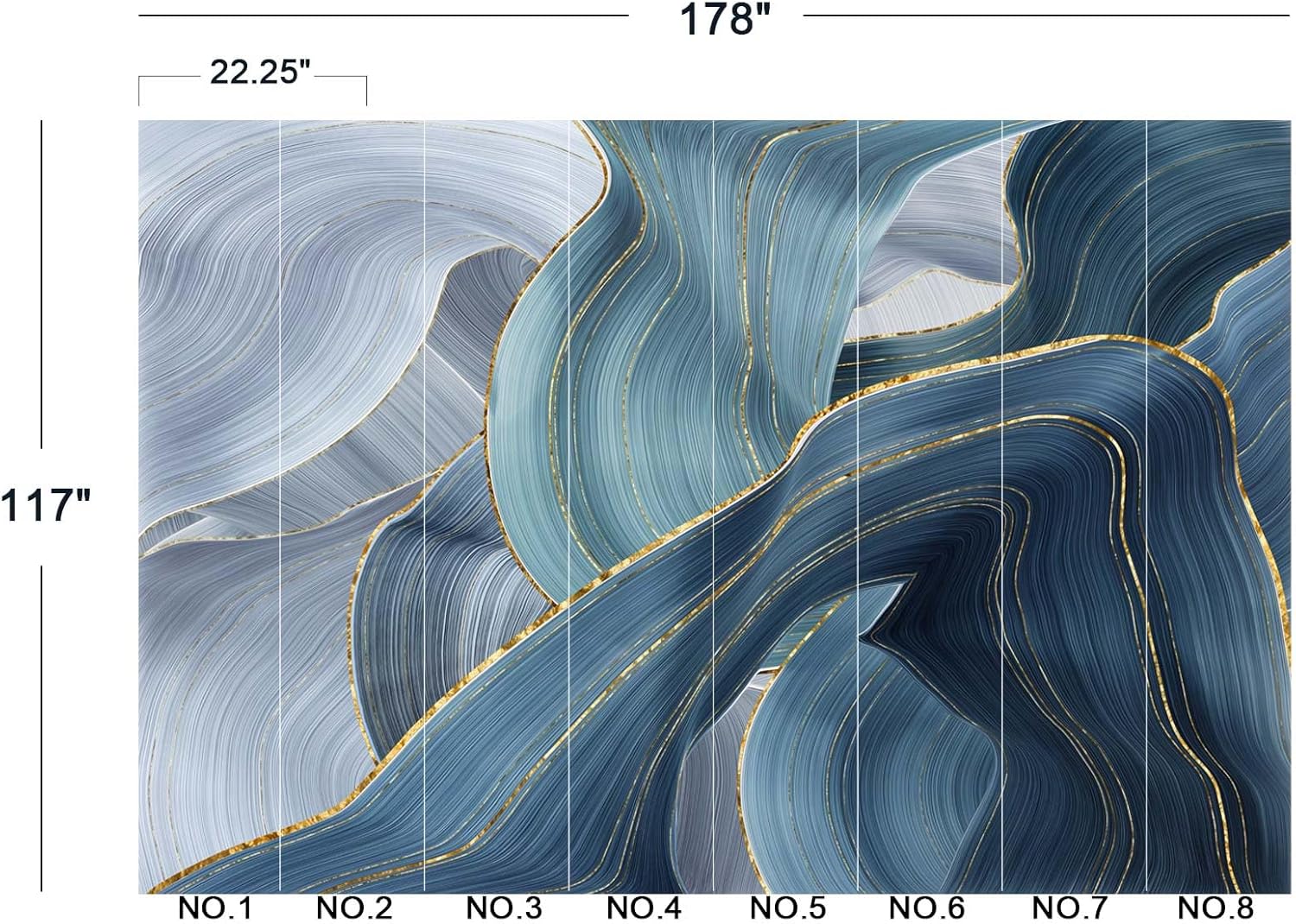 • The size of the wallpaper is 178" wide x 117" high and divided into 8 panels.