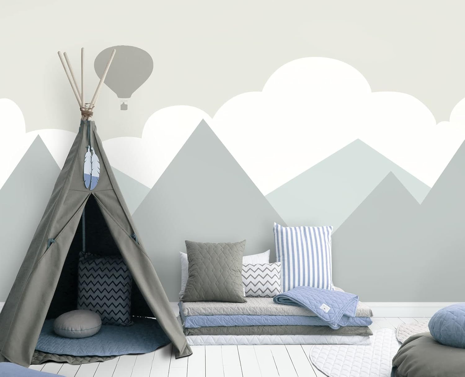 Cartoon Hot air Balloon Mountain Peak Baiyun Children's Nursery Wall Mural Wallpaper 137" x 100"