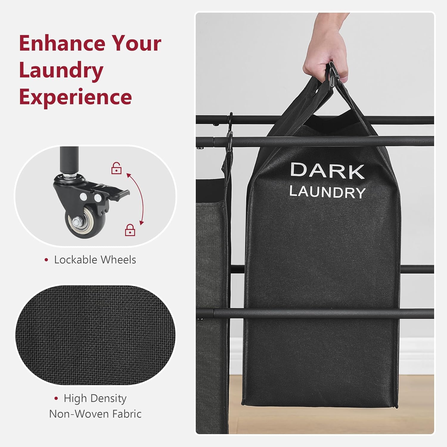 • 【Removable Laundry Bags】Each laundry bag can be taken out individually from the 2-part laundry sorter, use the two metal handles to lift the laundry bag for easy access to the laundry room.