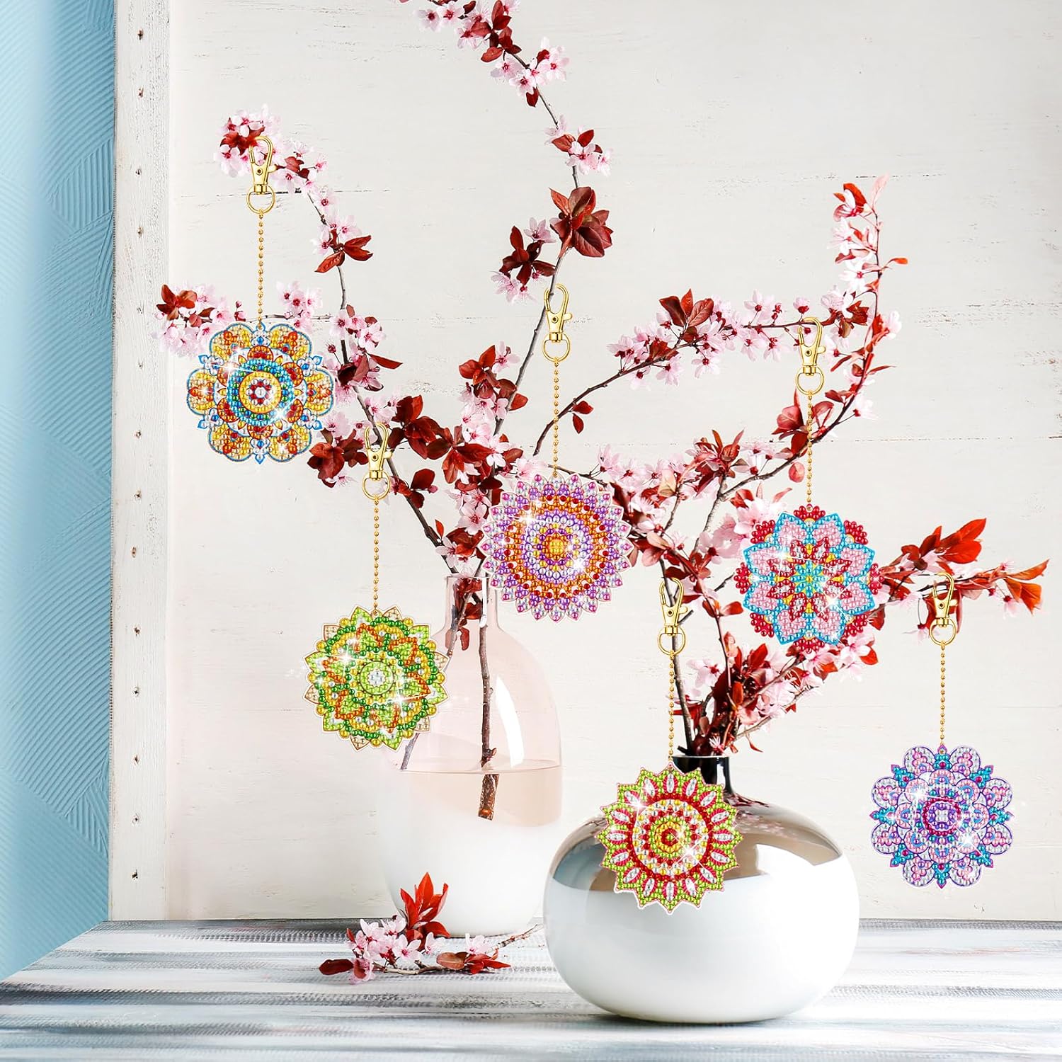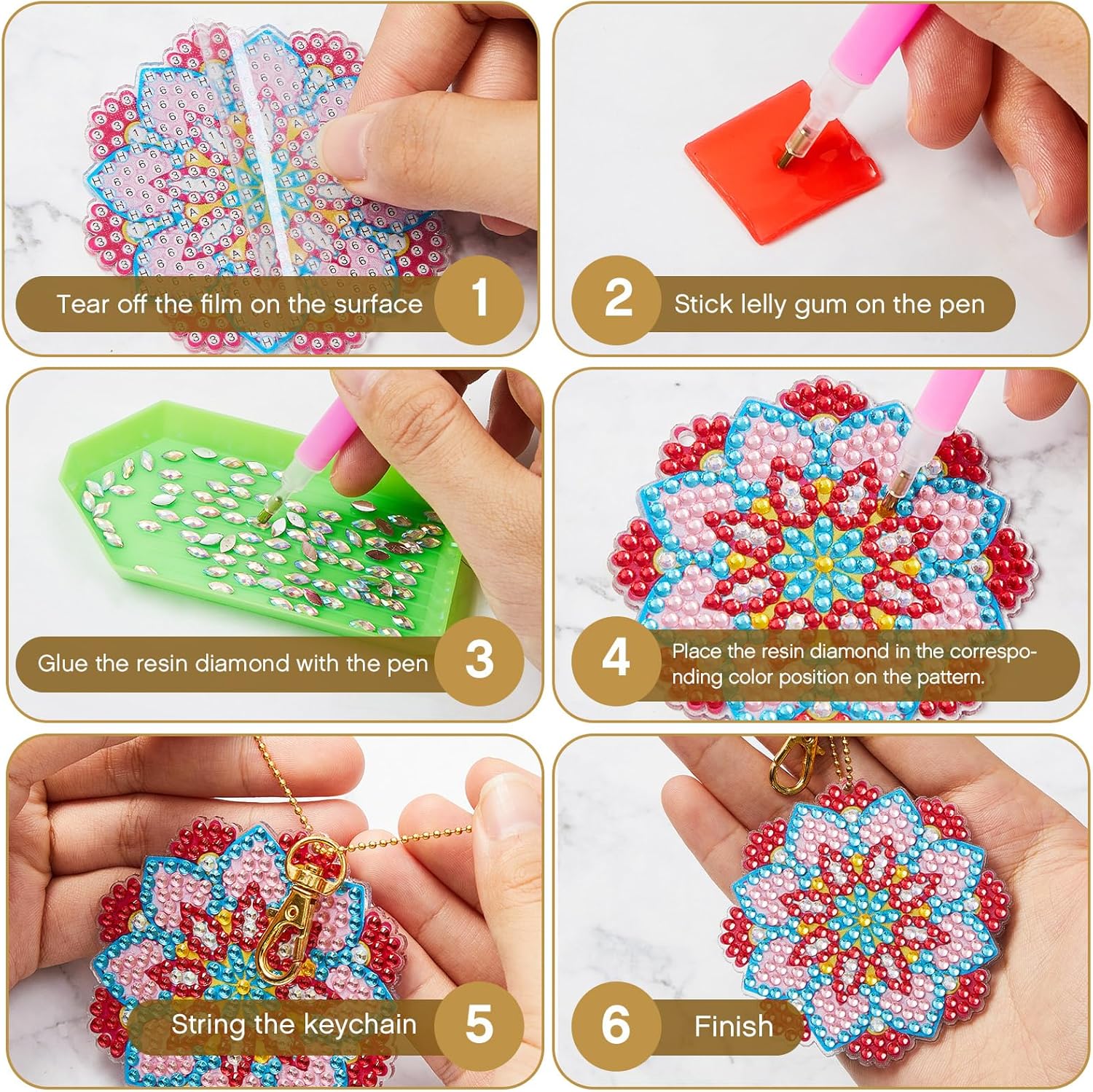 • Easy to Use: these diamond art keychains are simple to use, you just need to put the corresponding diamonds according to the pictures, to finish the DIY process one by one, to get your own mandalas shaped diamond painting keychains