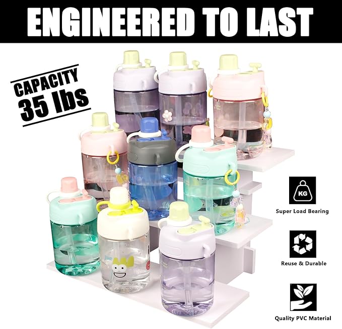 • STURDY AND DURABLE: This tiered display stand is made of 0.4 inch thick high quality polyvinyl chloride material for extra durability and safety, the bottom uses reinforced crossbars for added strength and stability and can hold up to 35 lbs, the craft fair rack has a smooth and beautiful surface with a gorgeous and stylish appearance it is one of the most practical craft fair display racks for craft shows.