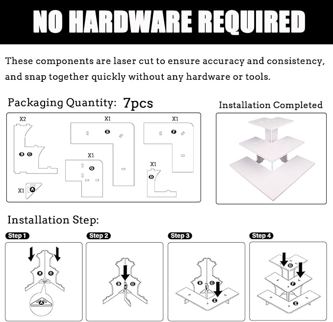 • EASY TO ASSEMBLE: Our portable display rack shelves are precision cut pieces specifically engineered to snap together. It installs quickly without any hardware or tools, and can be assembled/disassembled repeatedly, making it easy to take to farmers markets, craft shows, and trade shows. Our carefully crafted stands make products shine, this white risers display stands size: 13" L x 13" W x 9.5" H.