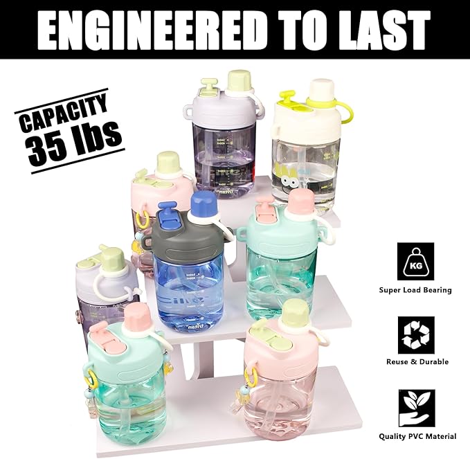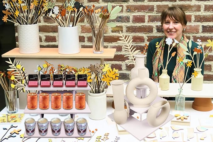 • STURDY AND DURABLE: This tiered display stand is made of 0.4 inch thick high quality polyvinyl chloride material for extra durability and safety, the bottom uses reinforced crossbars for added strength and stability and can hold up to 35 lbs, the craft fair rack has a smooth and beautiful surface with a gorgeous and stylish appearance it is one of the most practical craft fair display racks for craft shows.