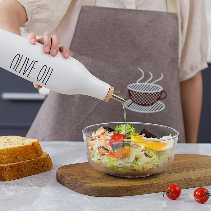 • Ceramic Oil Dispenser: 16.9oz Olive Oil Cruet Bottle with Bamboo Cap and Stainless Steel Spout