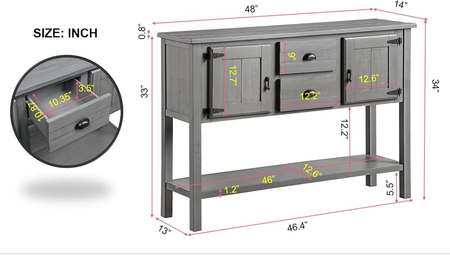 • 【Retro Sofa Table】The console table 48 '' L* 14 '' W*34'' H .Solid Wood Sideboard Console Table features a retro design that adds a touch of vintage charm to your foyer, entryway, or dining room. Its classic aesthetic enhances the overall ambiance of your space.