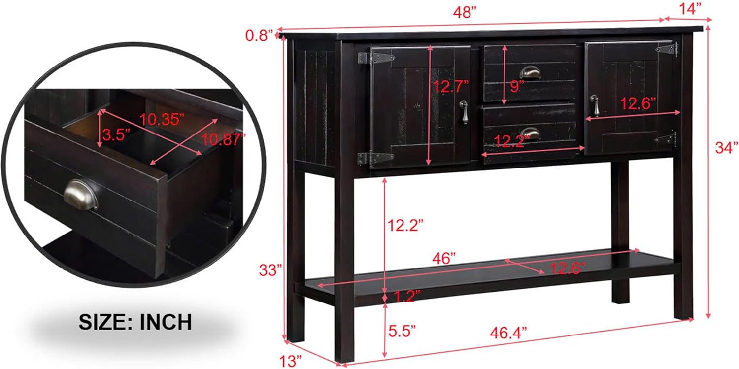 • 【Retro Sofa Table】The console table 48 '' L* 14 '' W*34'' H .Solid Wood Sideboard Console Table features a retro design that adds a touch of vintage charm to your foyer, entryway, or dining room. Its classic aesthetic enhances the overall ambiance of your space.