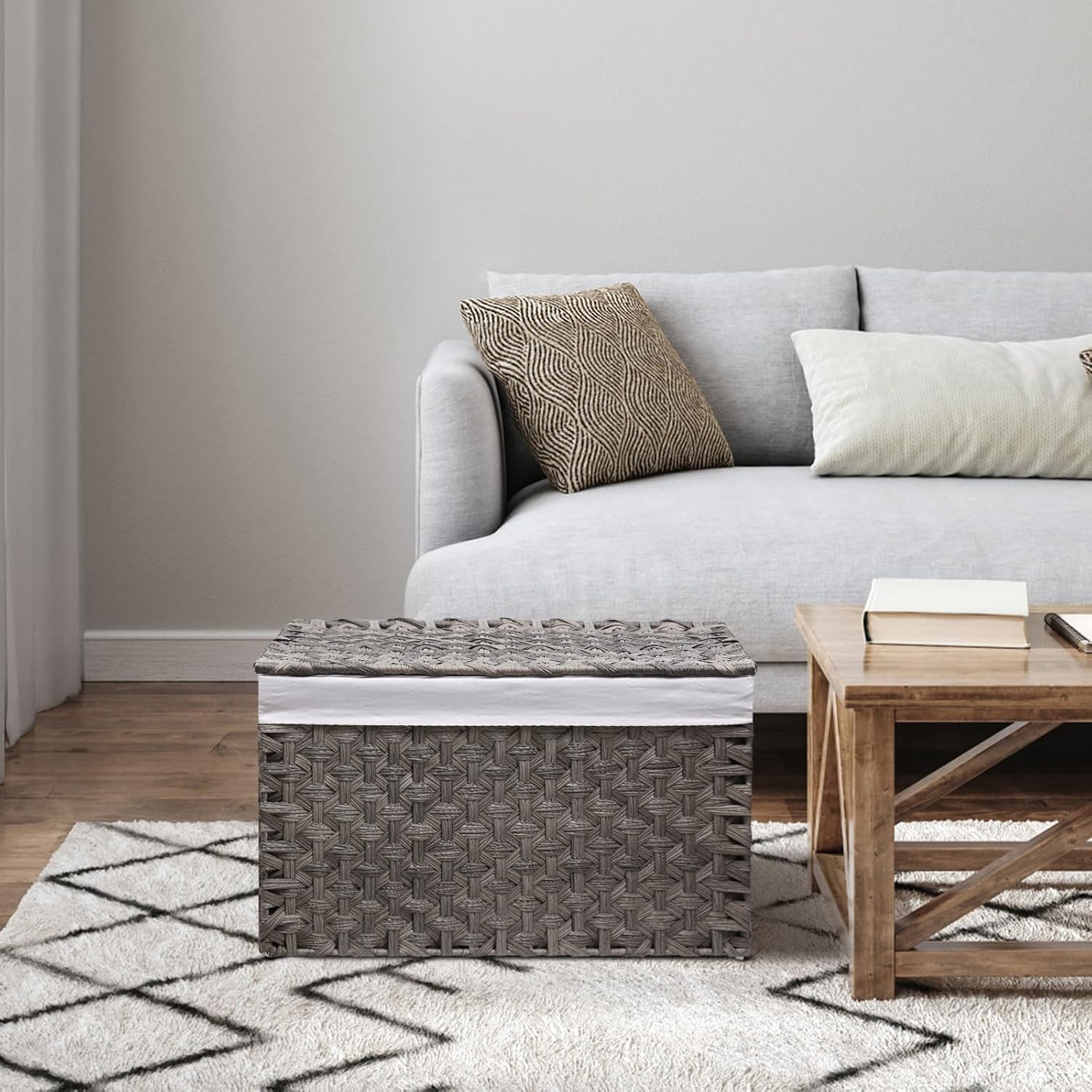 • [Washable Lining Bag] The included cotton lining bag is easily washable, ensuring the cleanliness of your stored items. This lining bag is securely fixed on the wicker basket with lid using two ropes, providing added stability and convenience