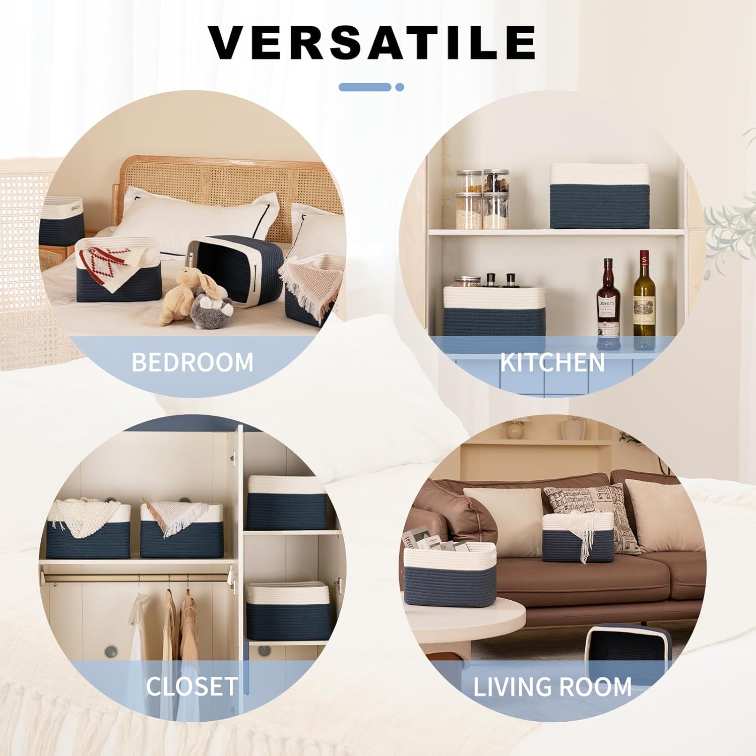 • Stylish and Elegant: SIXDOVE Cotton Rope Storage Basket. The woven design of these baskets adds a touch of rustic charm to any room decor, making them a perfect addition to your living room, bedroom, bathroom, or nursery. These cube rope storage baskets enhance any room or decor of your home
