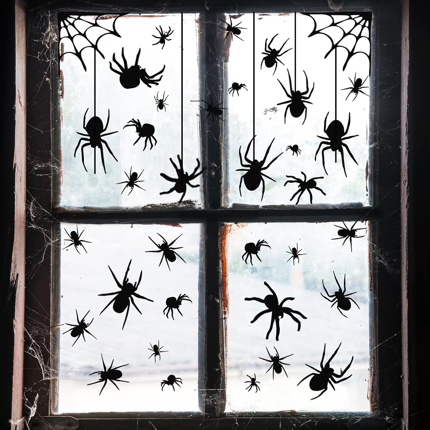 4 Sheets Spider Window Clings - Double-Sided Removable Glass Decals, Halloween Themed Window Stickers for Kids Party Decorations