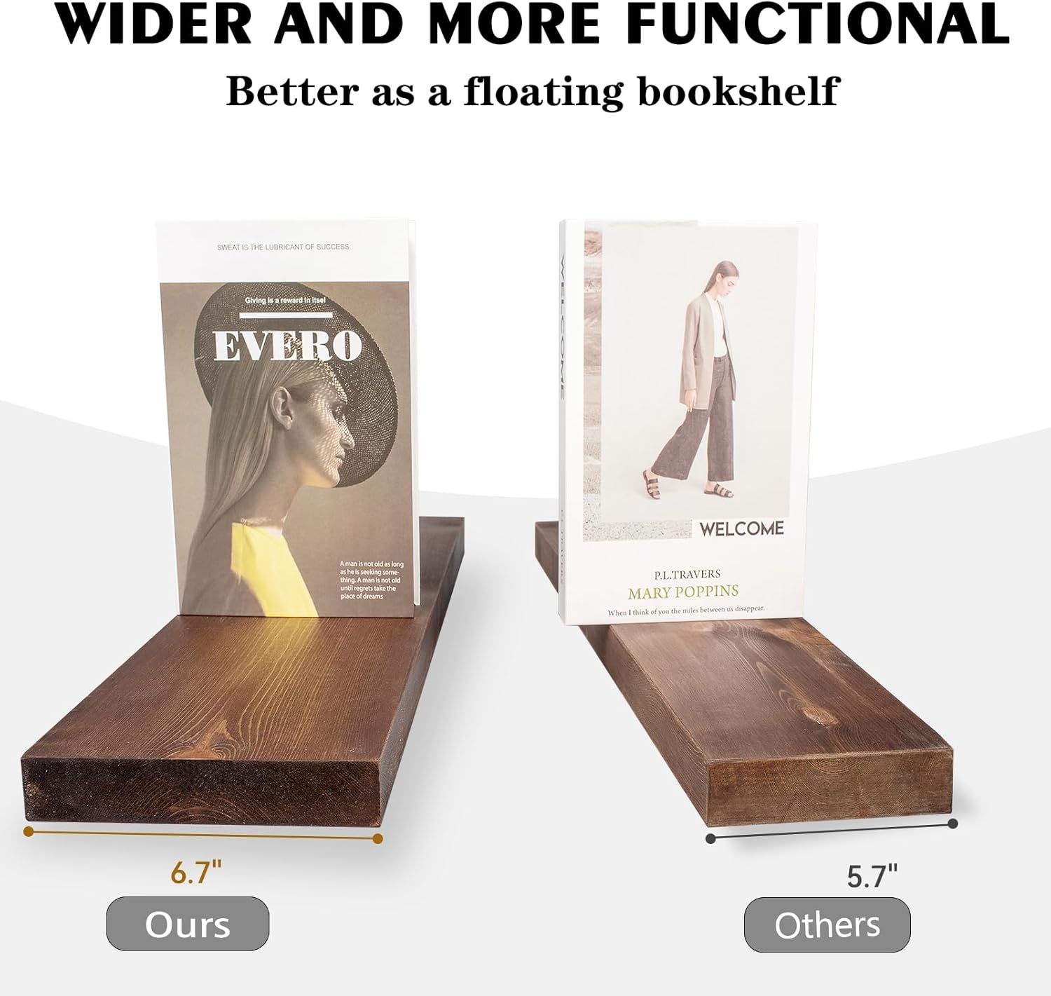 • PERFECT SIZE: Each floating shelf is 6.7" deep, which means they can hold most books without taking up too much space. It makes full use of empty walls and makes the room look bigger and neater