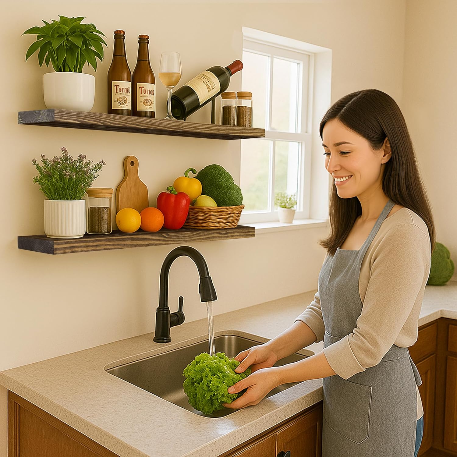 • EASY TO INSTALL: These floating shelves come with stainless steel galvanized invisible brackets, toggle bolts for drywall, and simple instructions to help you install them. These wall shelves are easy to assemble, requiring only two boards and the necessary screws and hardware. We also provide detailed instructions for quick and easy assembly