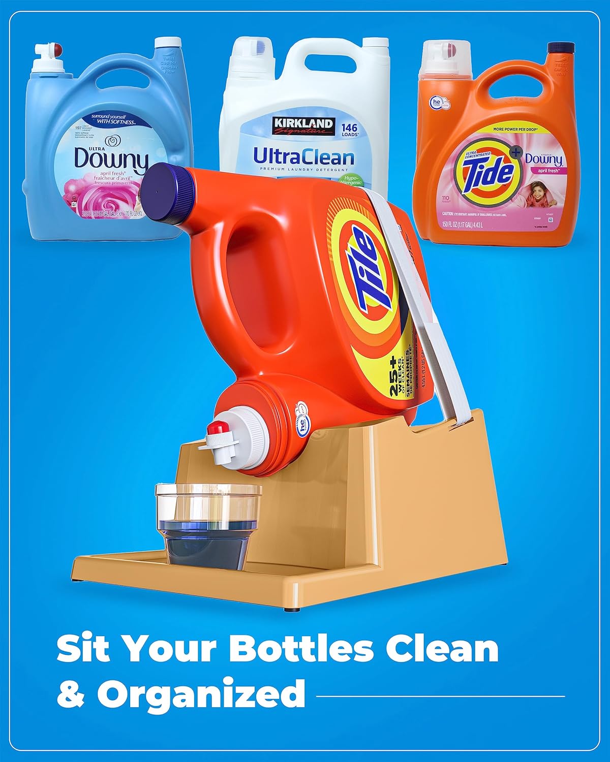 • [Versatile Fit:] The liquid laundry detergent holder station's optimal size (7.9"L x 12.2"W x 5.5"H) accommodates various bottle sizes, providing a perfect fit for most detergent containers without taking up too much space. (Laundry Soap, Cup, and Bottles NOT Included)